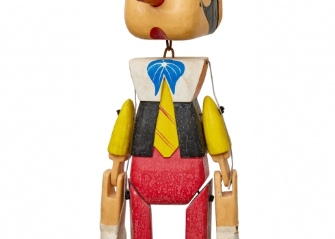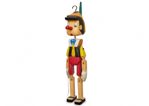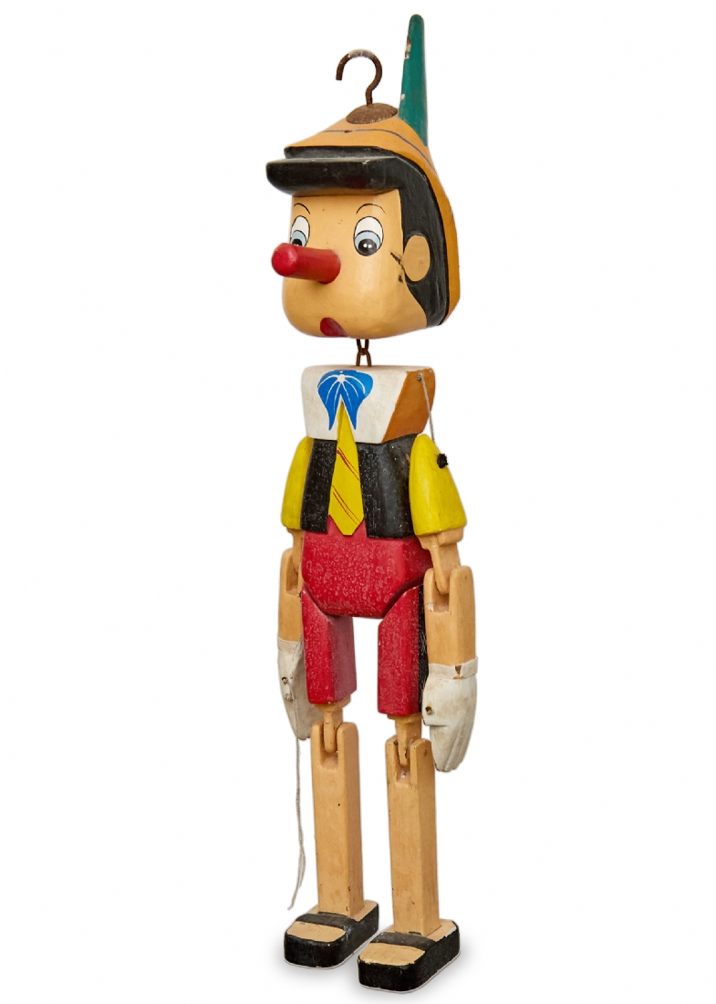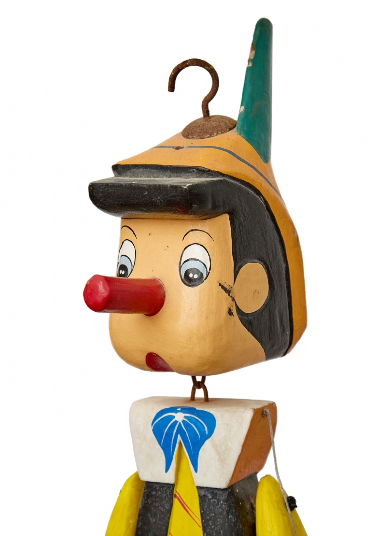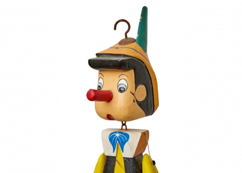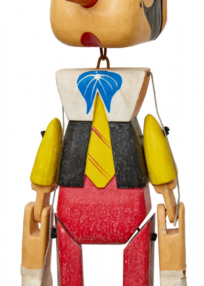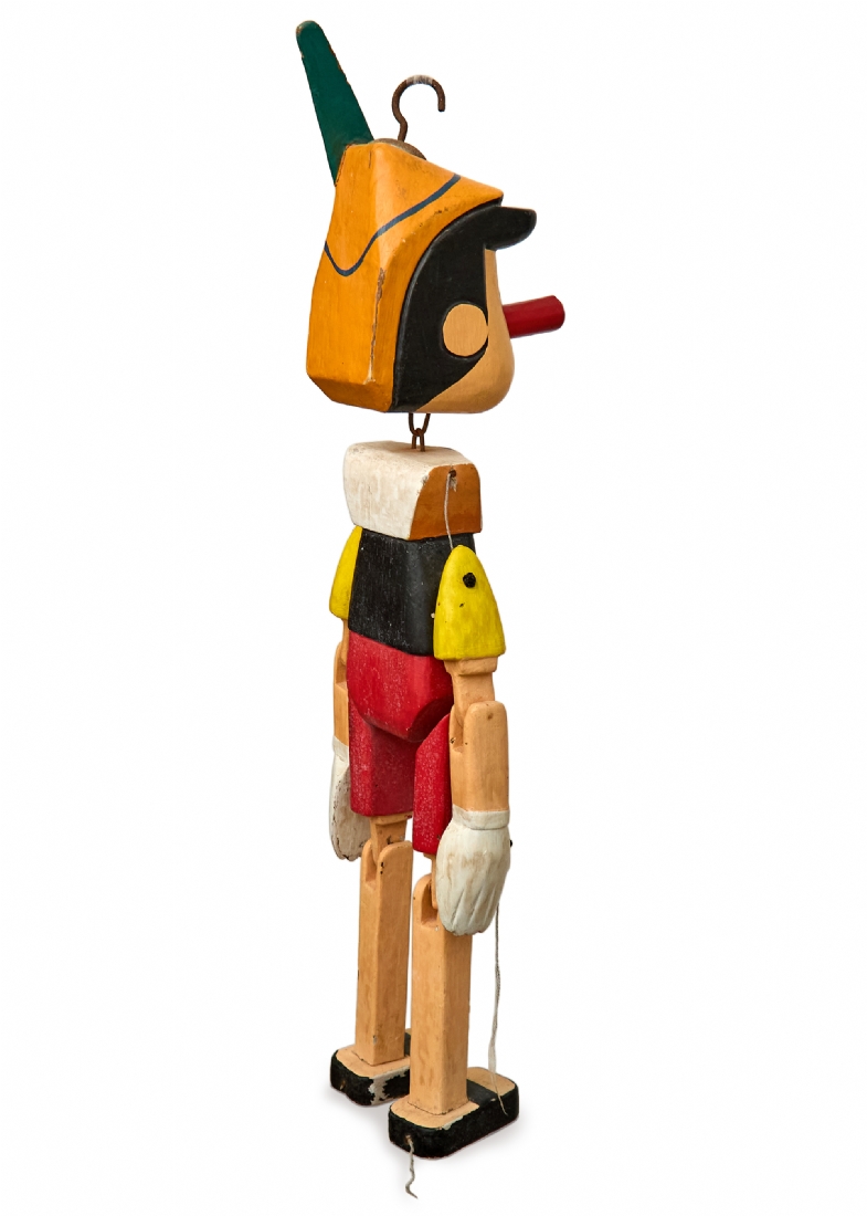 בובת פינוקיו וינטג’ מעץ עשויה ומצוירת בעבודת יד בובת חוטים אספנית