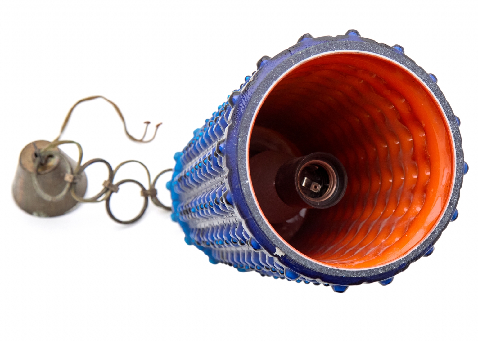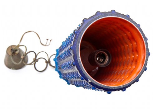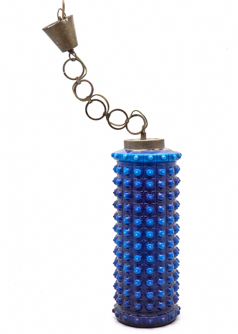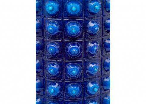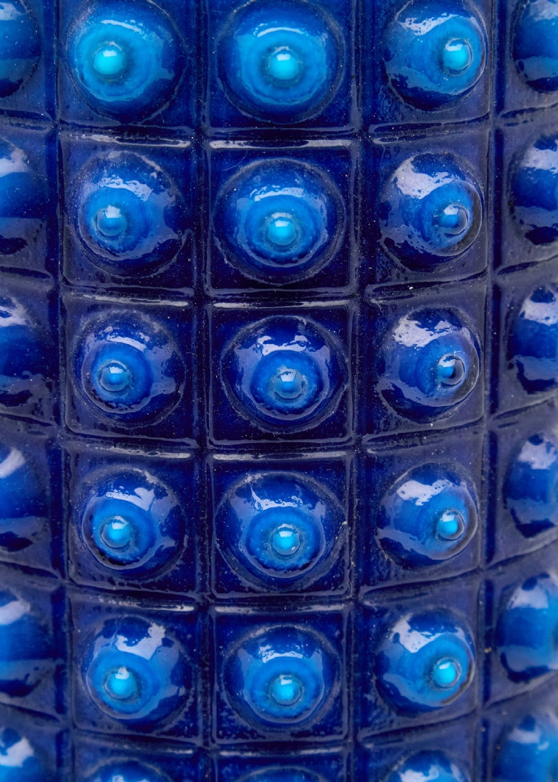 אהיל זכוכית גלילי בגוון כחול קובלט עמוק, מעוטר בדוגמת בועות בולטות