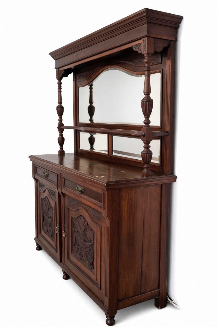 מזנון אנגלי עתיק (ויקטוריאני) עשוי עץ ומראה, מגולף ביד