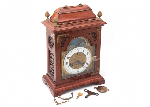 שעון קמין גרמני מתוצרת חברת 'יונגהנס' 'Junghans' עשוי עץ מתכת וזכוכית