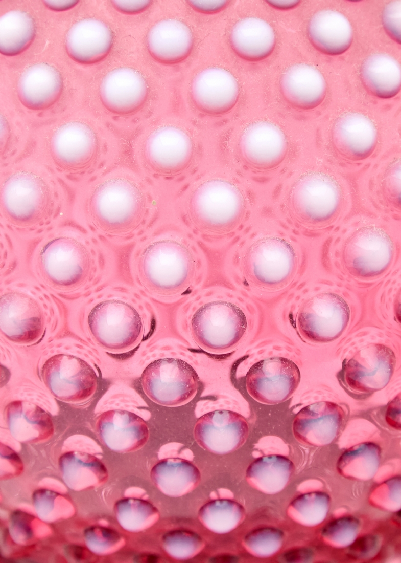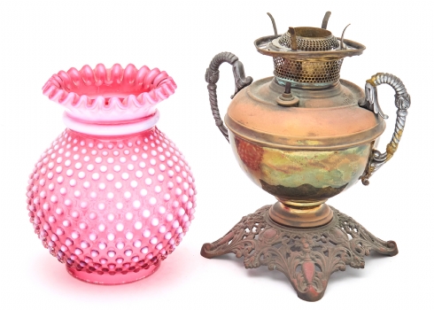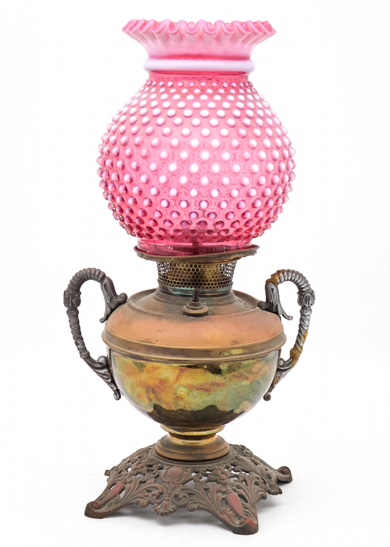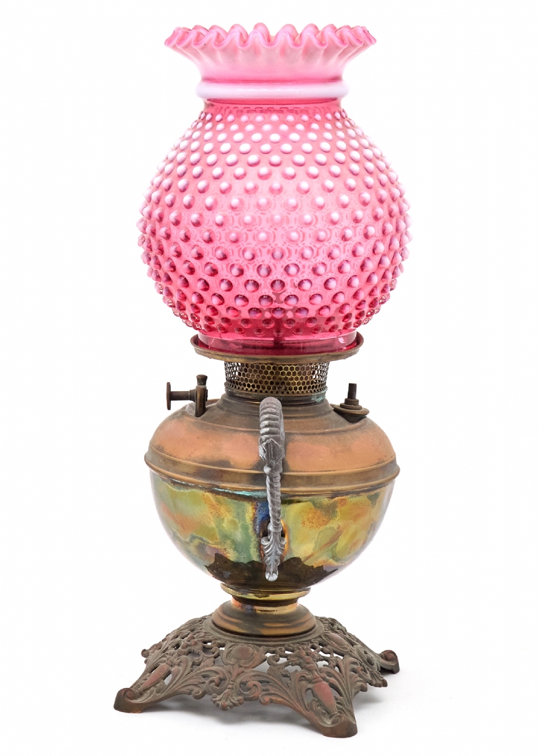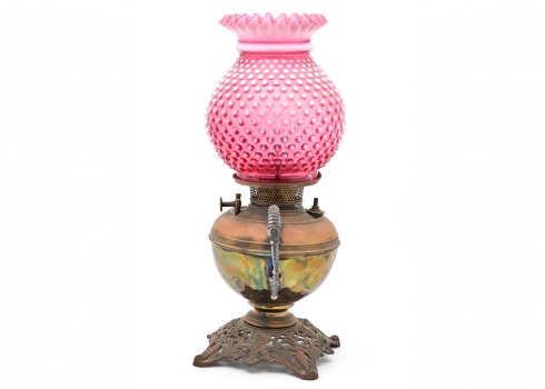 עשויה נחושת ואהיל זכוכית מסוג קראנברי 'Cranberry' בעיצוב 'Hobnail'