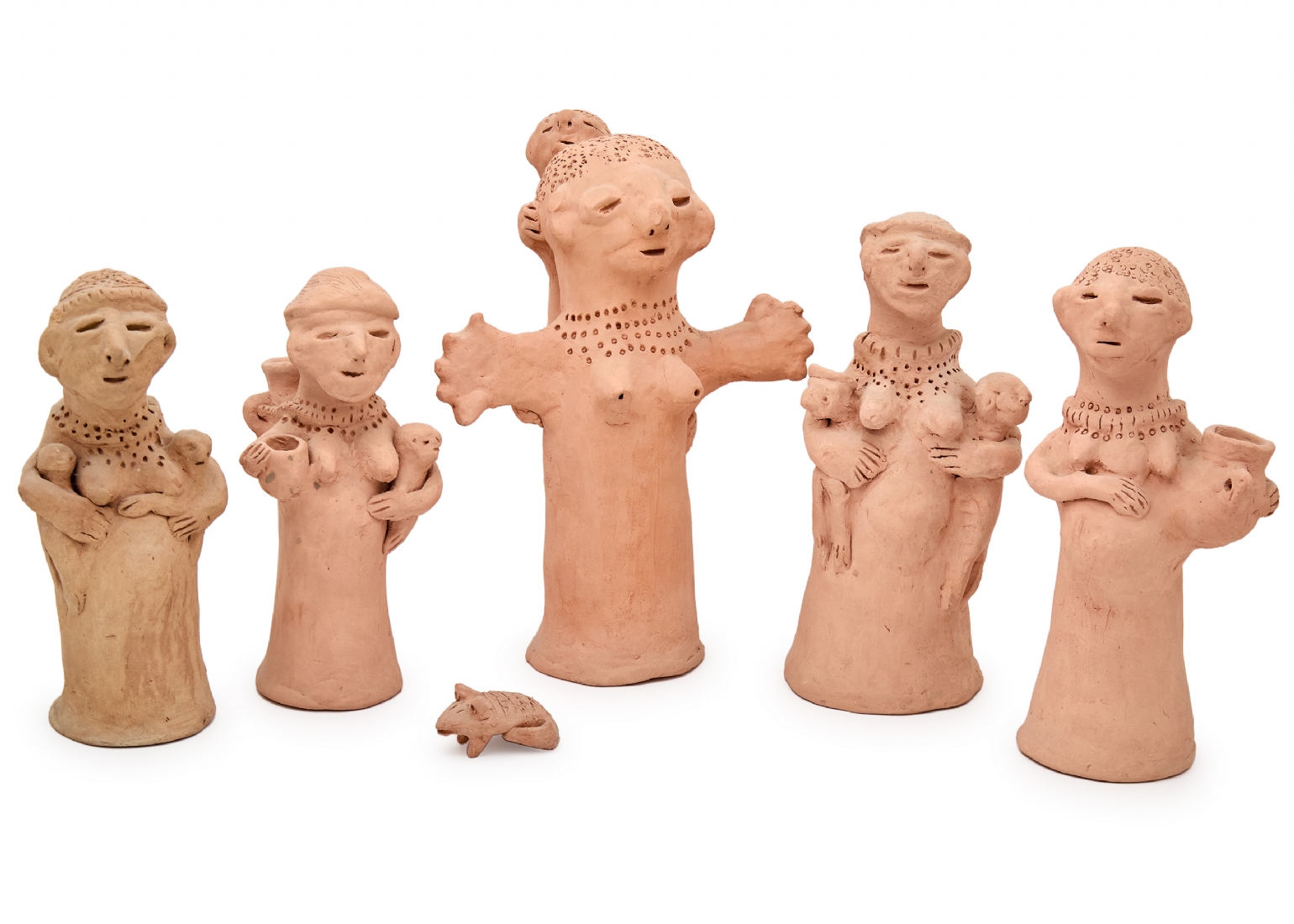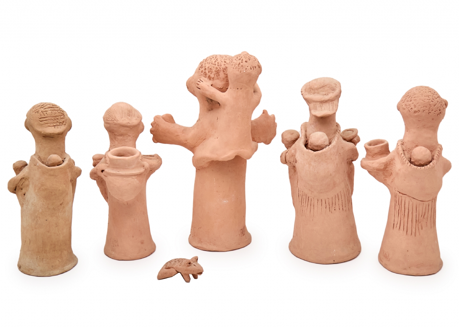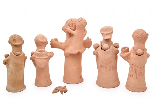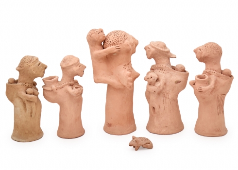 חמישה פסלי חימר אתיופים עשויים בעבודת יד