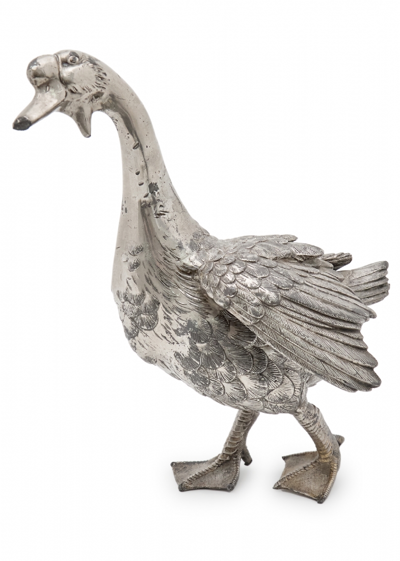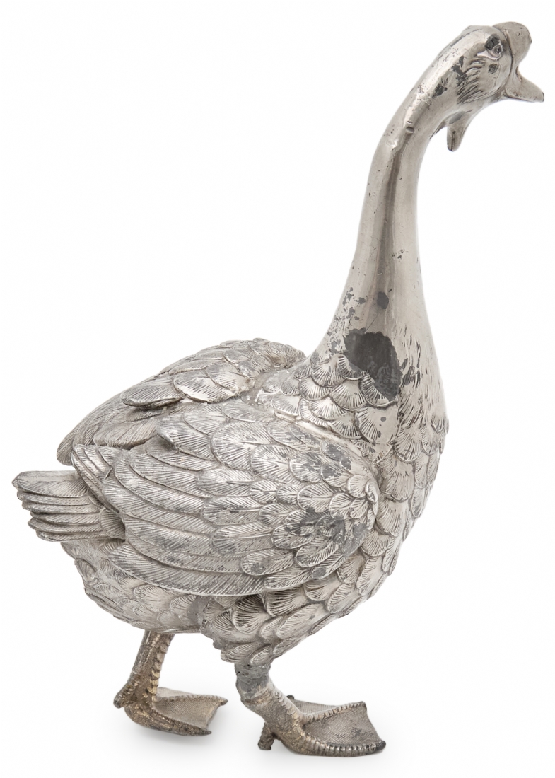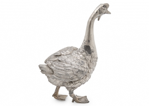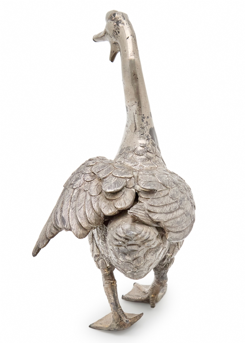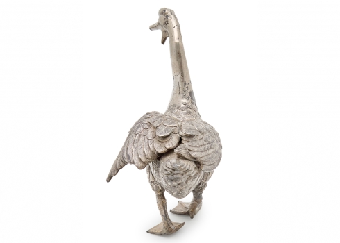 פסל שולחני בדמות אווז עשוי פליז יצוק מצופה כסף לא חתום