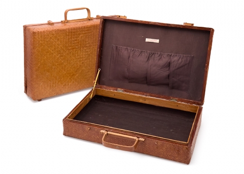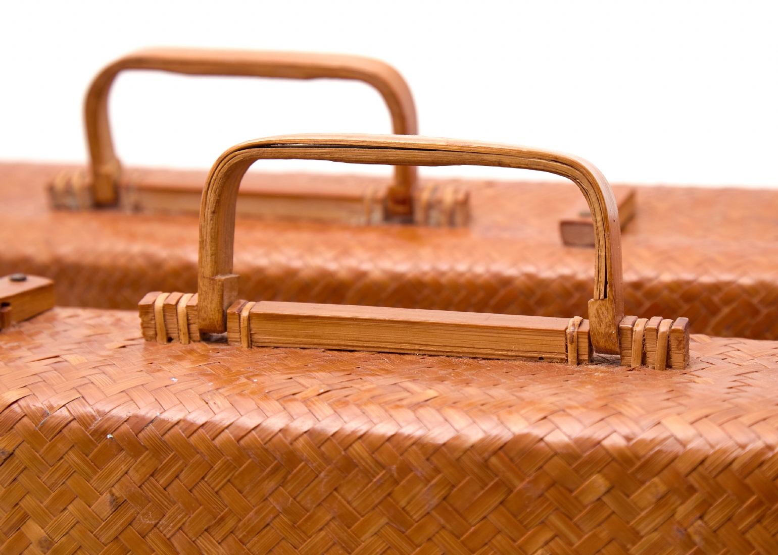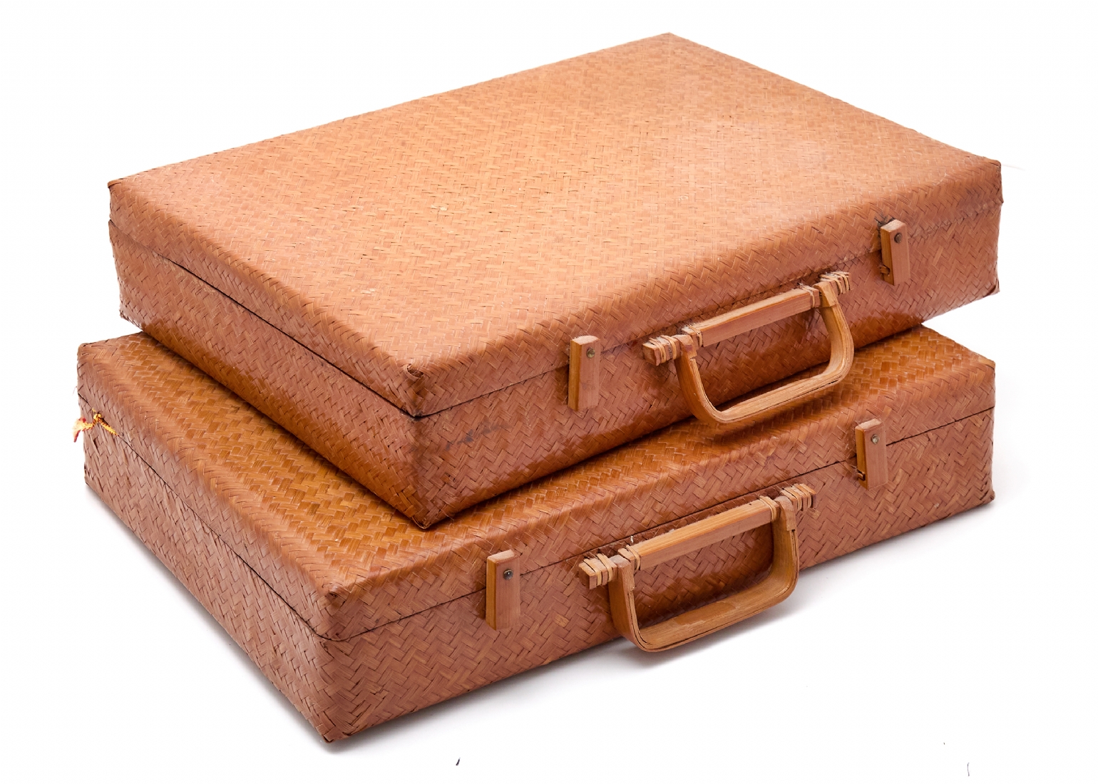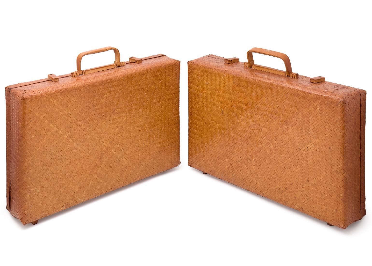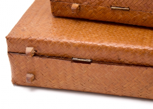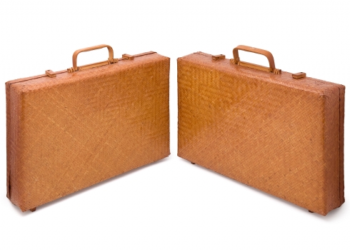 זוג מזוודות וינטג' עשויות קש ובמבוק קלוע בעבודת יד, תוצרת הרפובליקה של סין