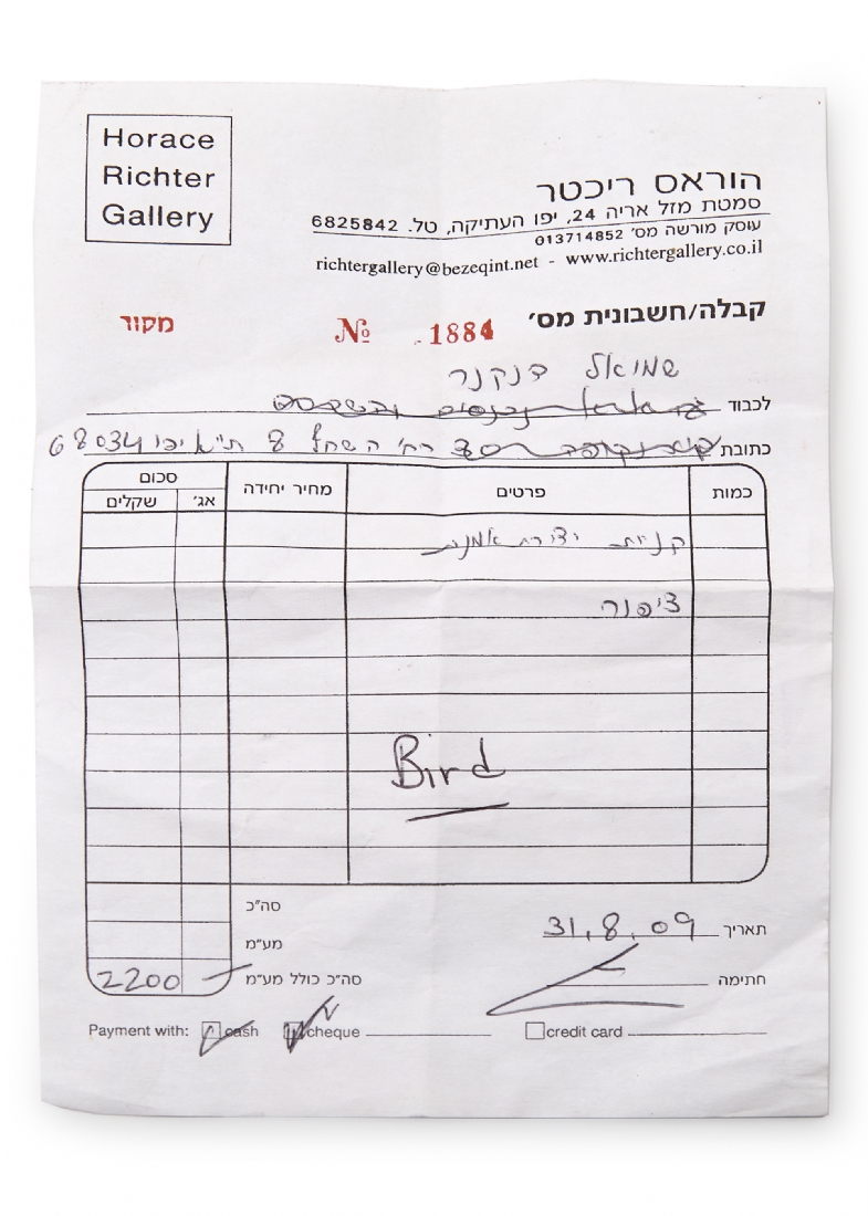 מתוארך: 2009נרכש על ידי הבעלים בגלריה הוראס ריכטר ביפו העתיקה (מצורף צילום של הקבלה משנת 2009)אורך: 90 ס"מגובה: 60 ס"מ