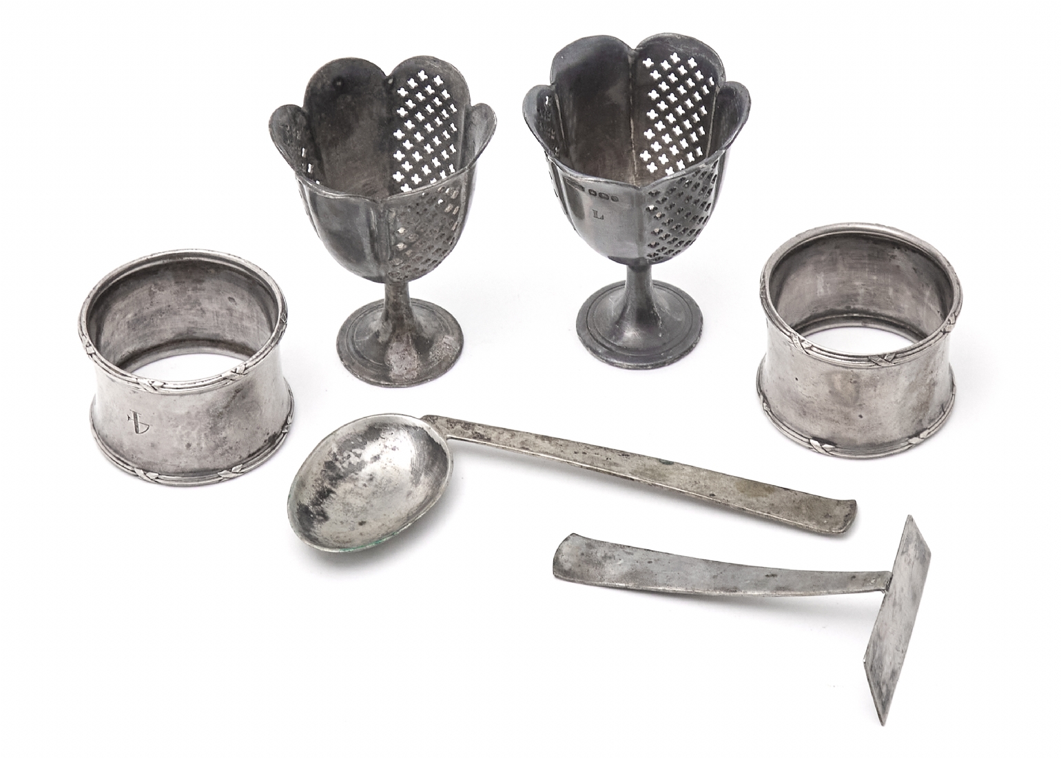 שישה כלי כסף שונים יצרנים ודגמים שונים