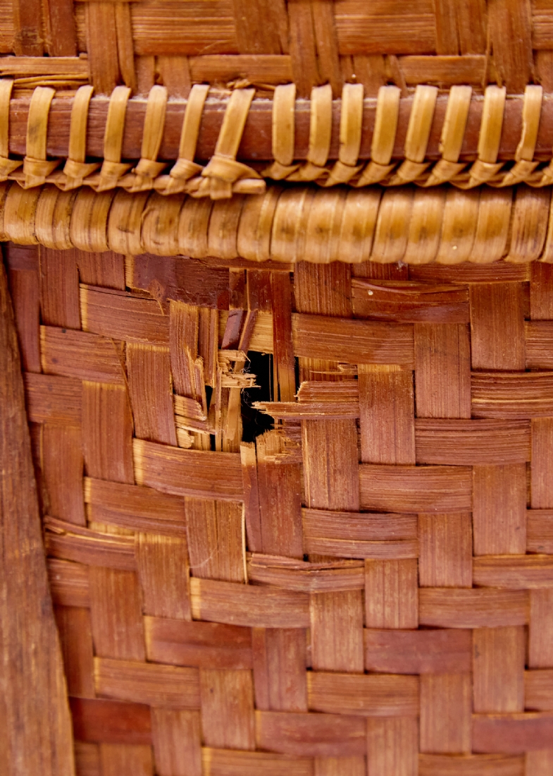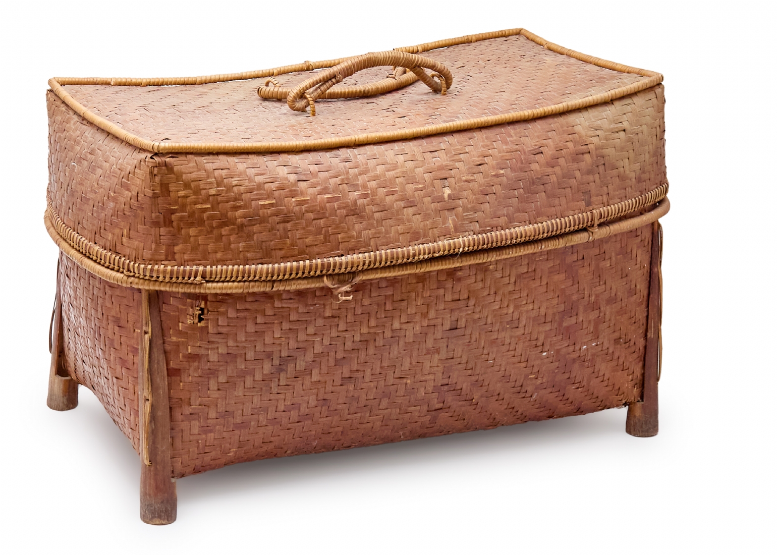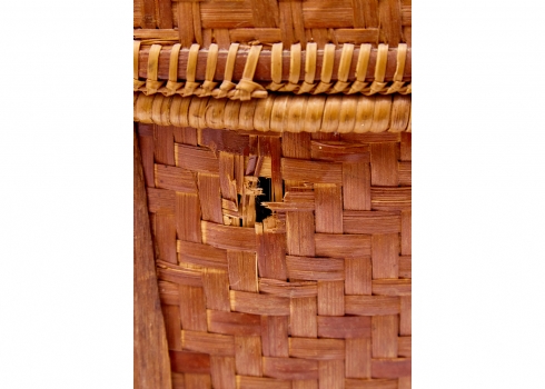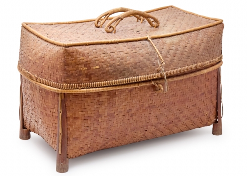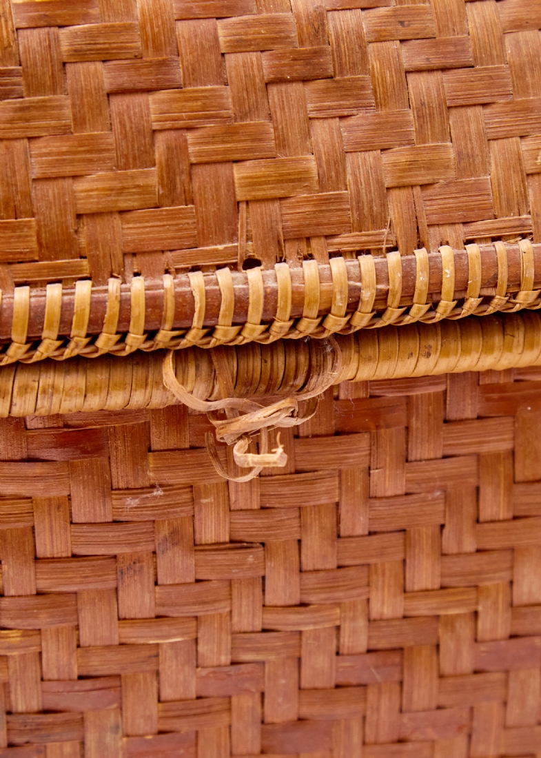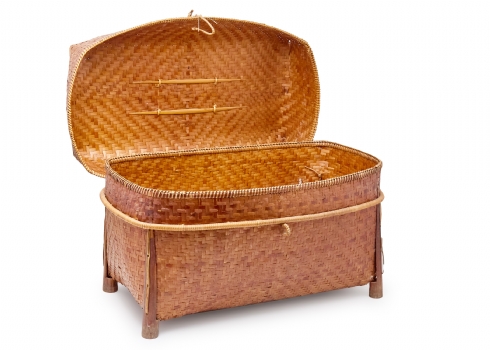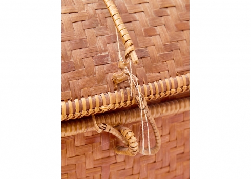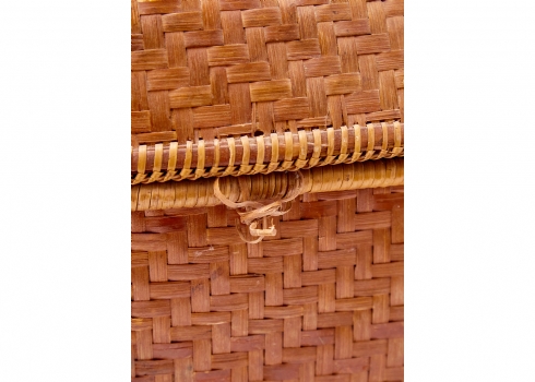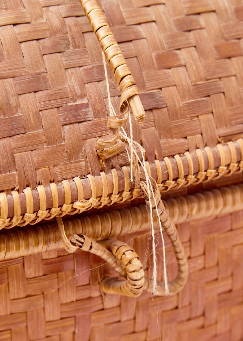 סלסלת במבוק ארוגה עבודת יד, ממוצא אסייתי בעלת מכסה תואם וידיות נשיאה