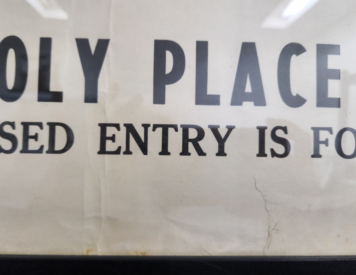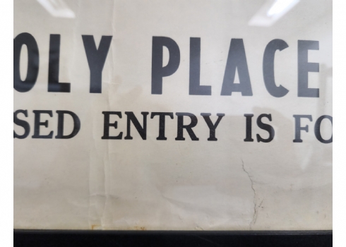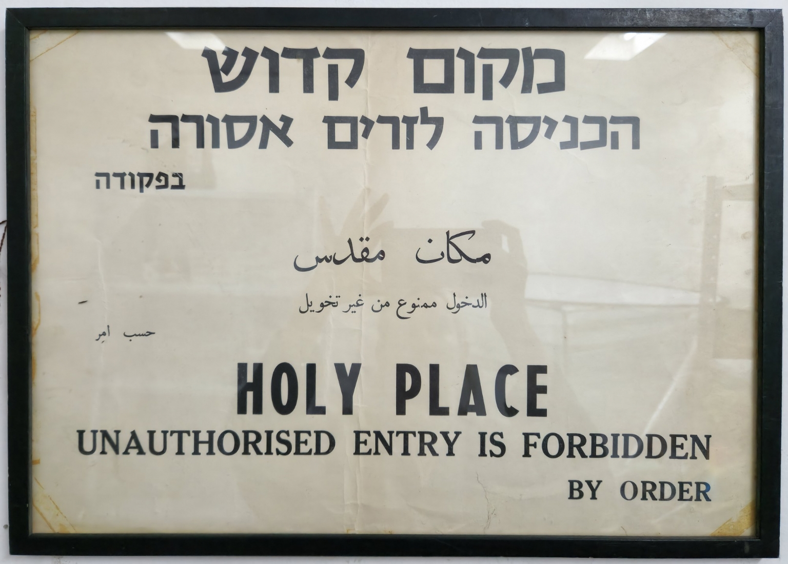 כרזה מודפסת 'מקום קדוש הכניסה לזרים אסורה'