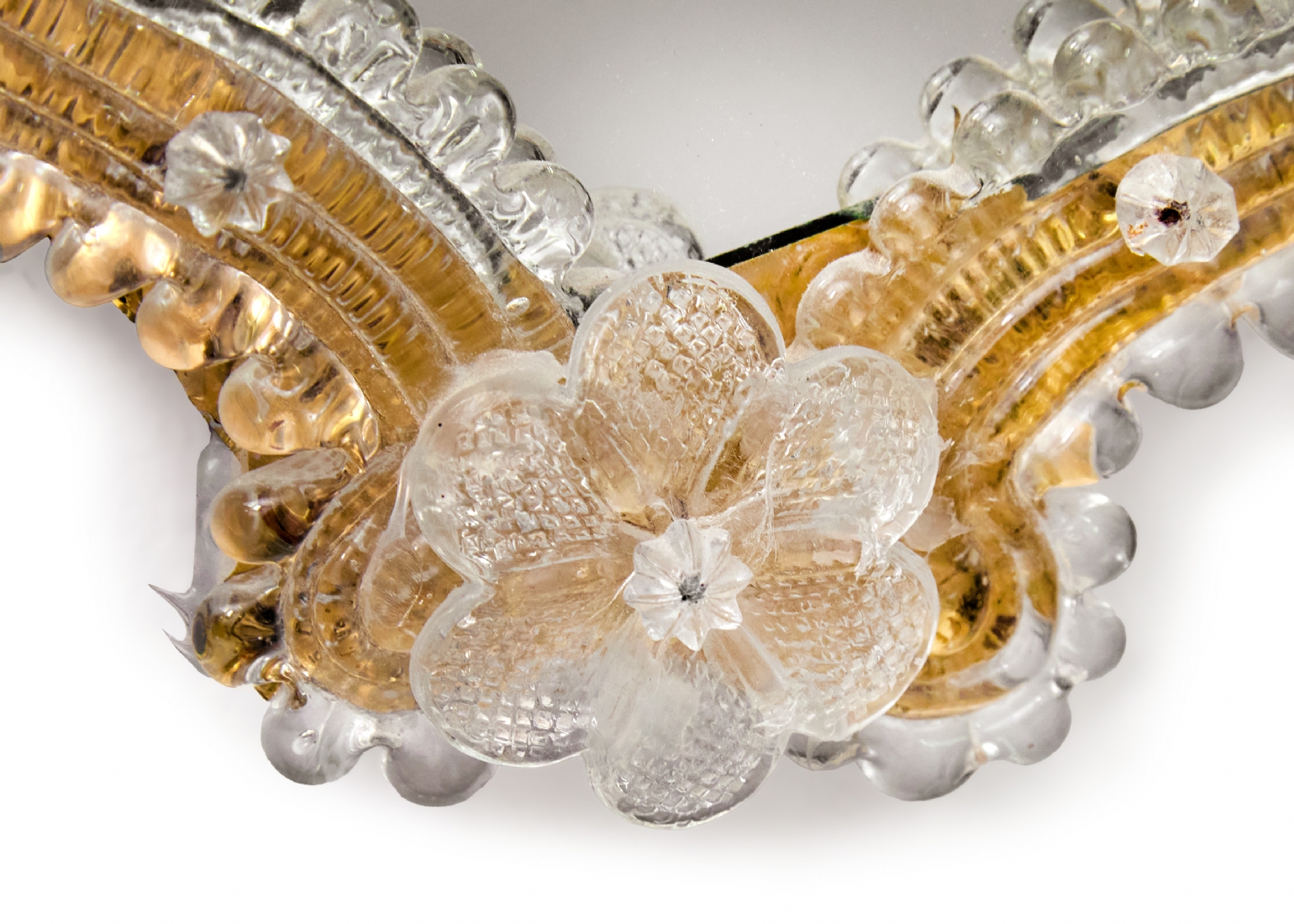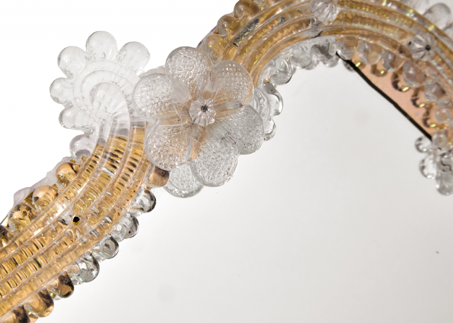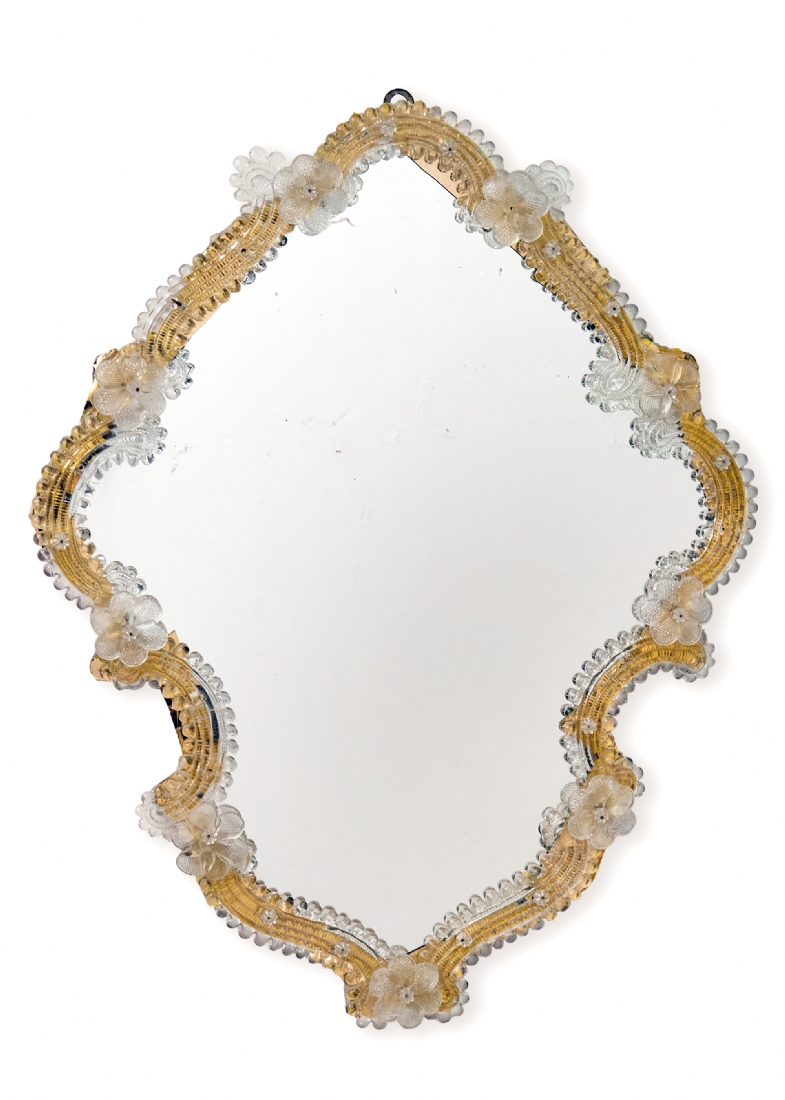 מראה ונציאנית עשויה עץ וזכוכית מעוטרת בפרחים