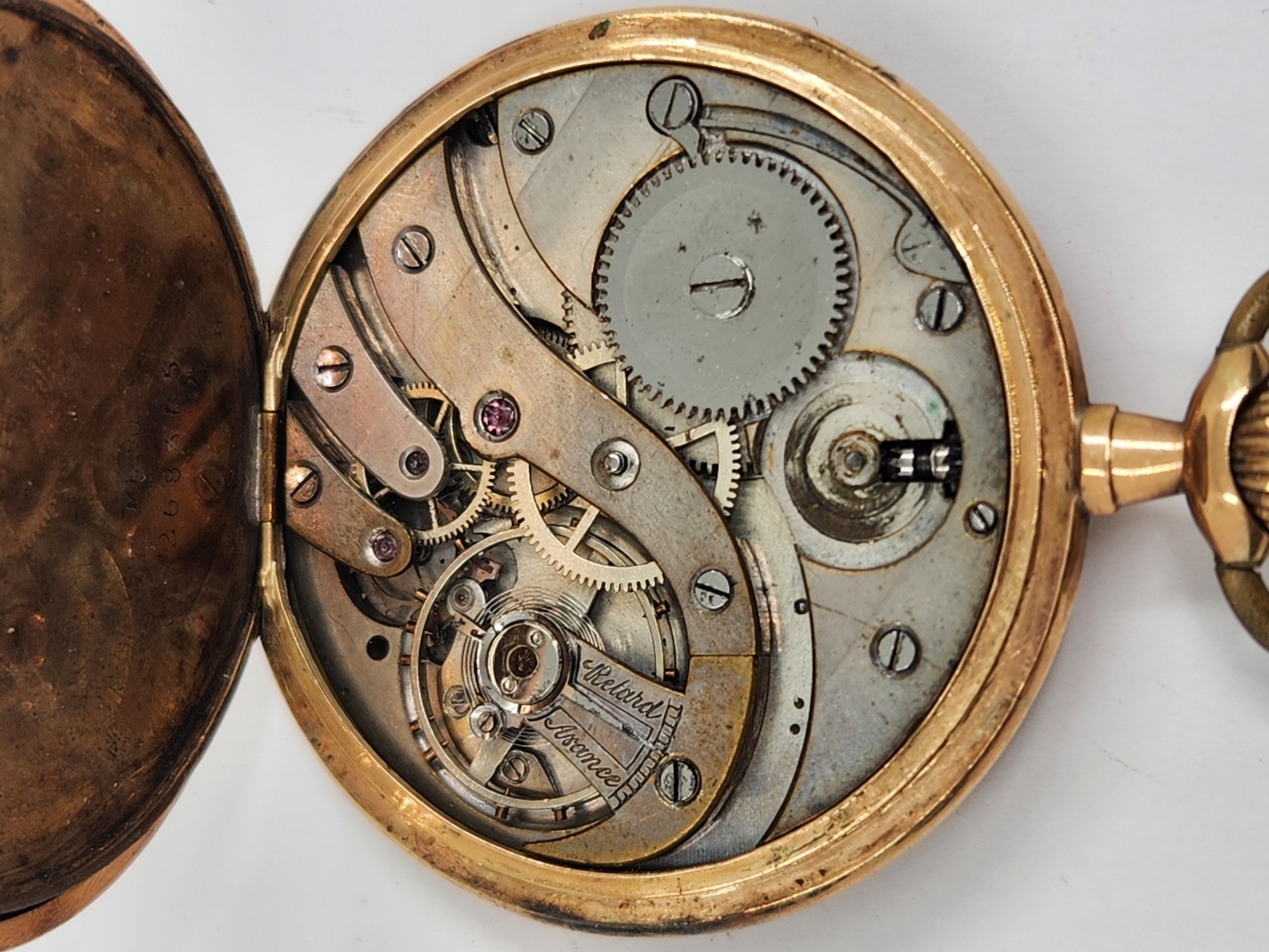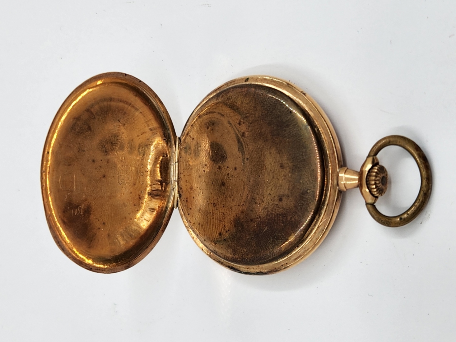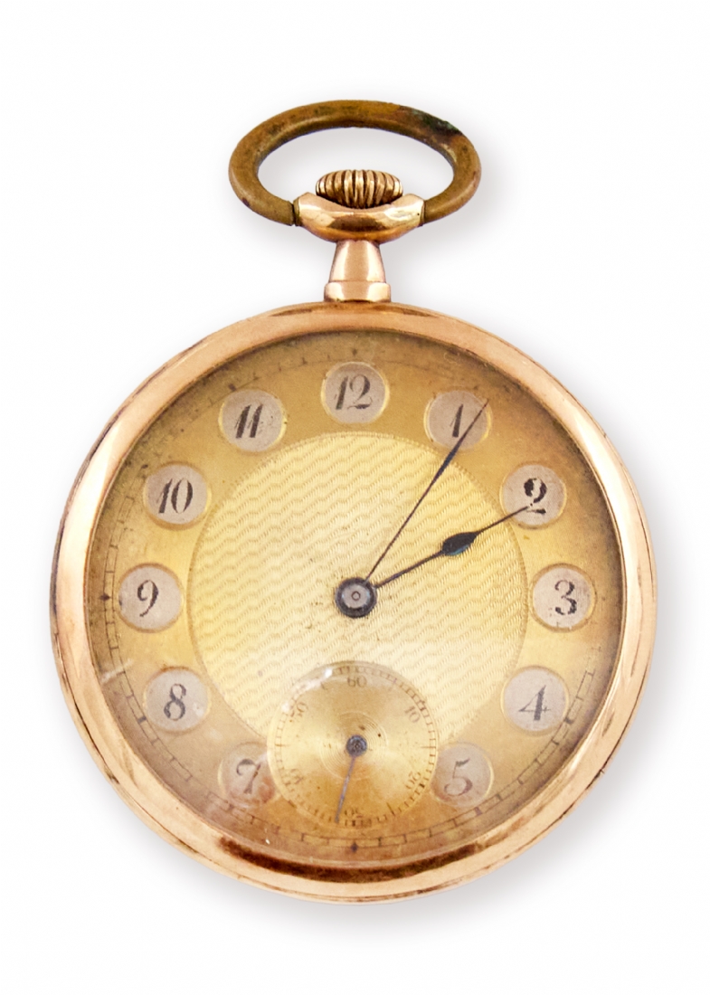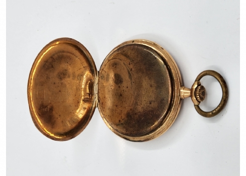 שעון כיס עתיק עשוי זהב צהוב 14 קארט, חתום