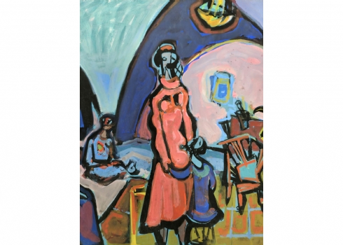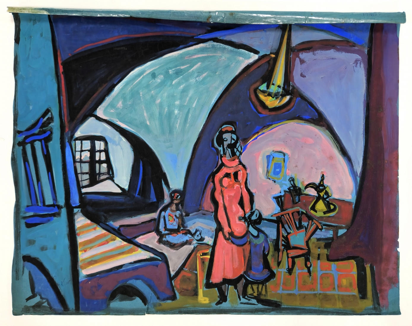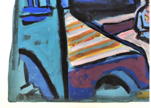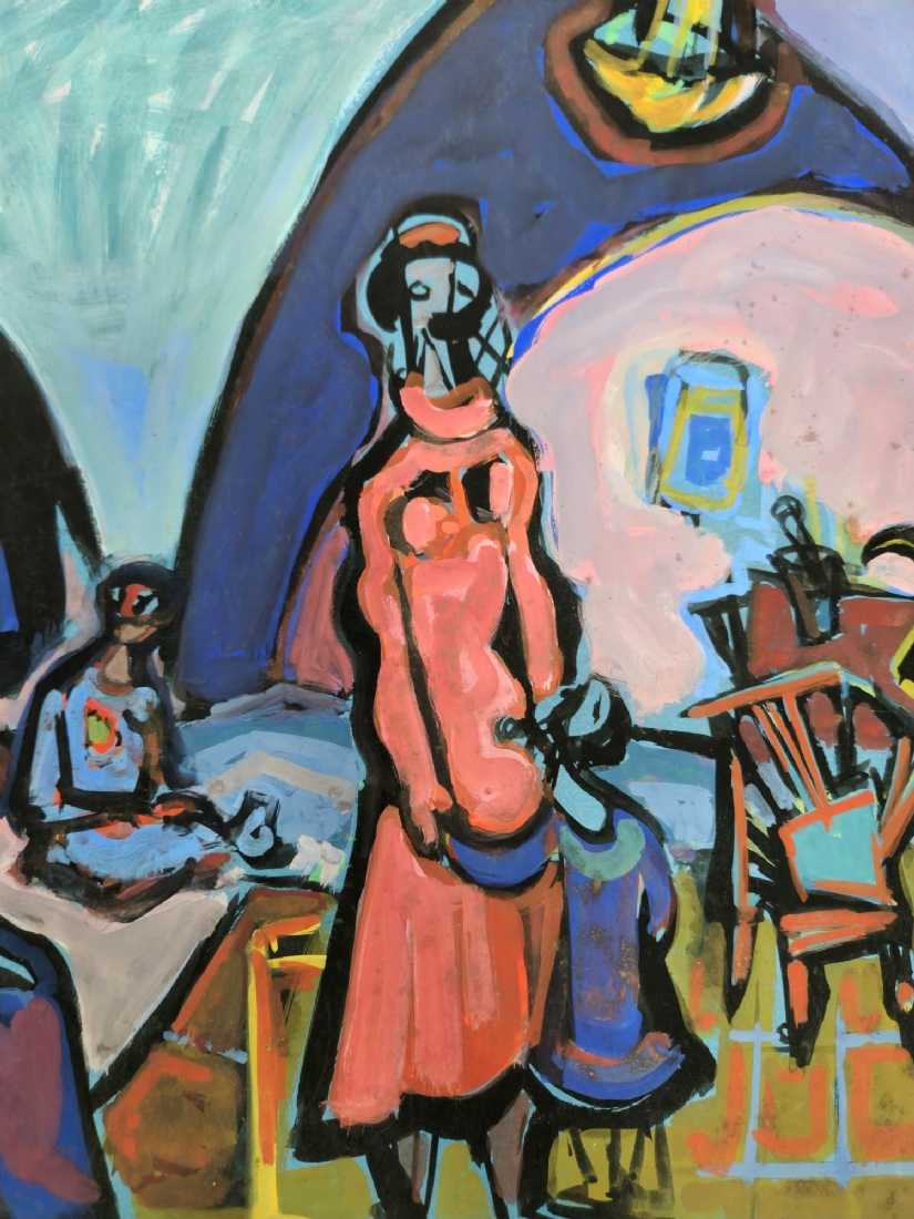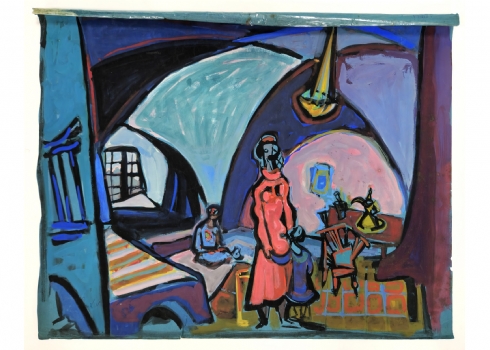 מרדכי אריאלי (1909-1993) - אישה באדום גואש על ניר, חתום