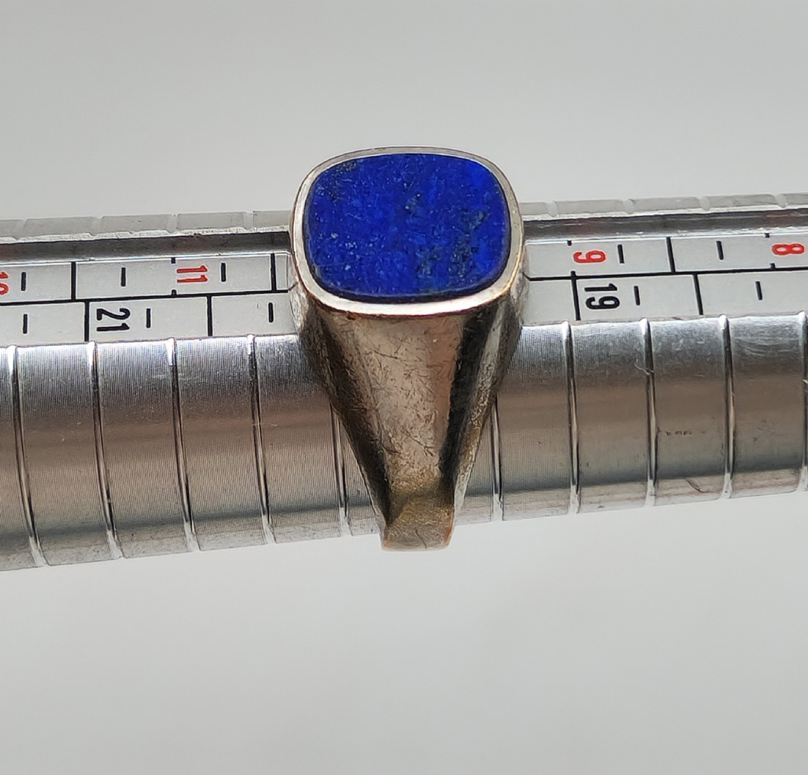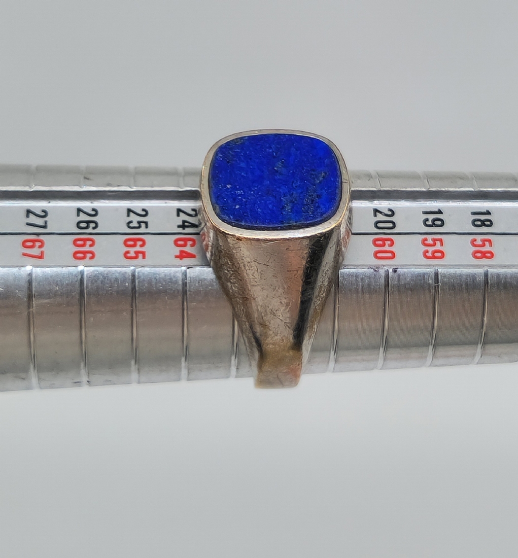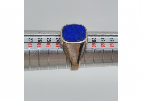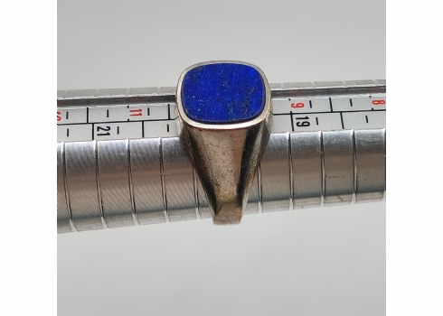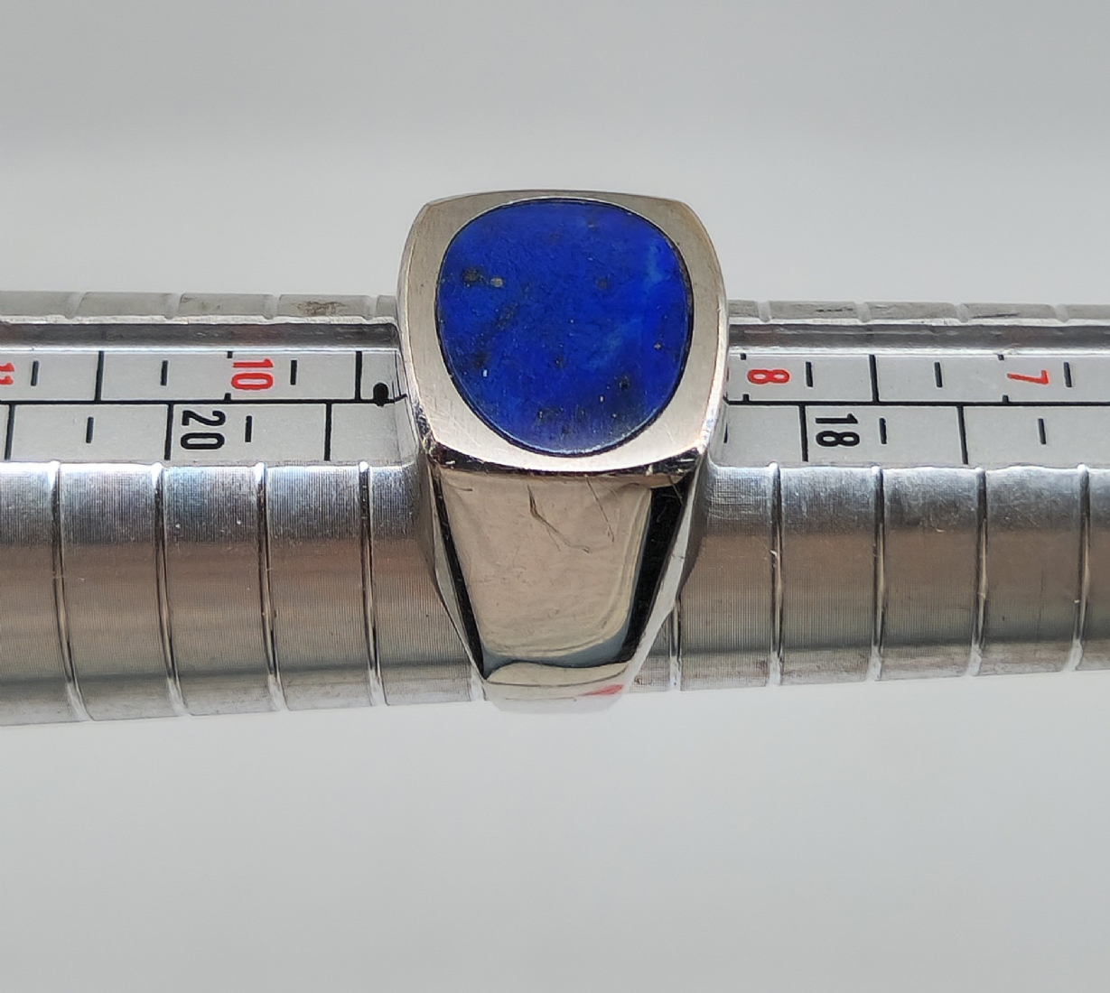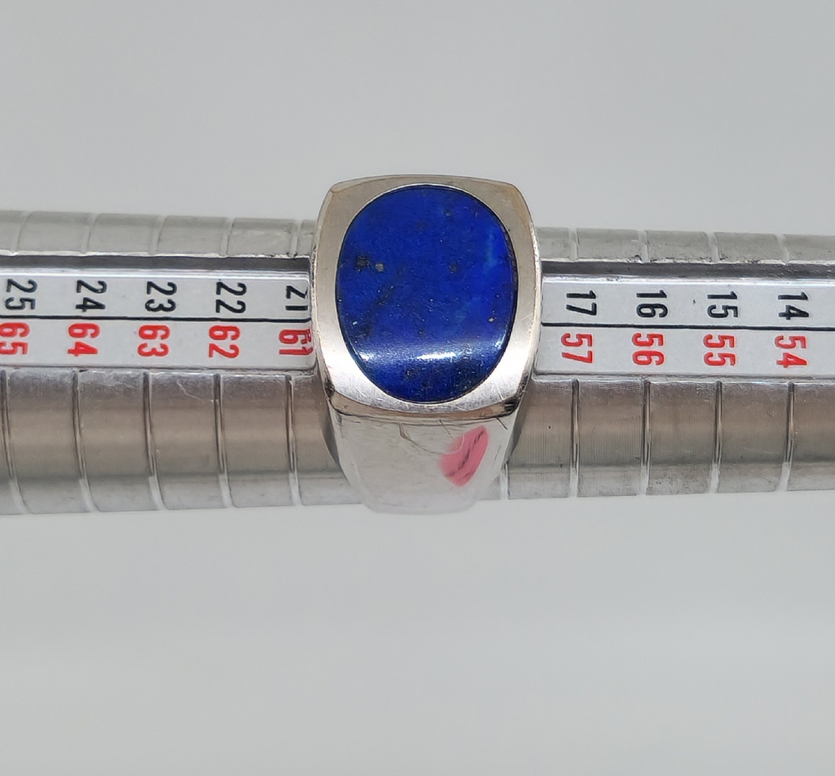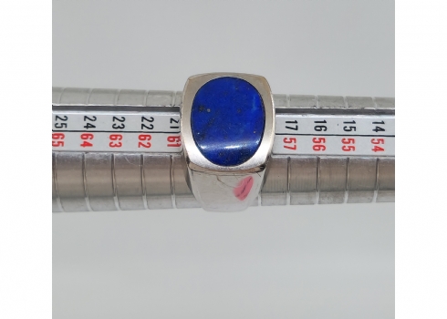 טבעת עשויה זהב לבן 18 קארט חתומה משובצת אבן לפיס כחולה במשקל כולל של: 8.32 גרם סה"כ