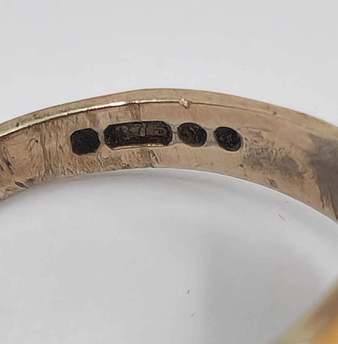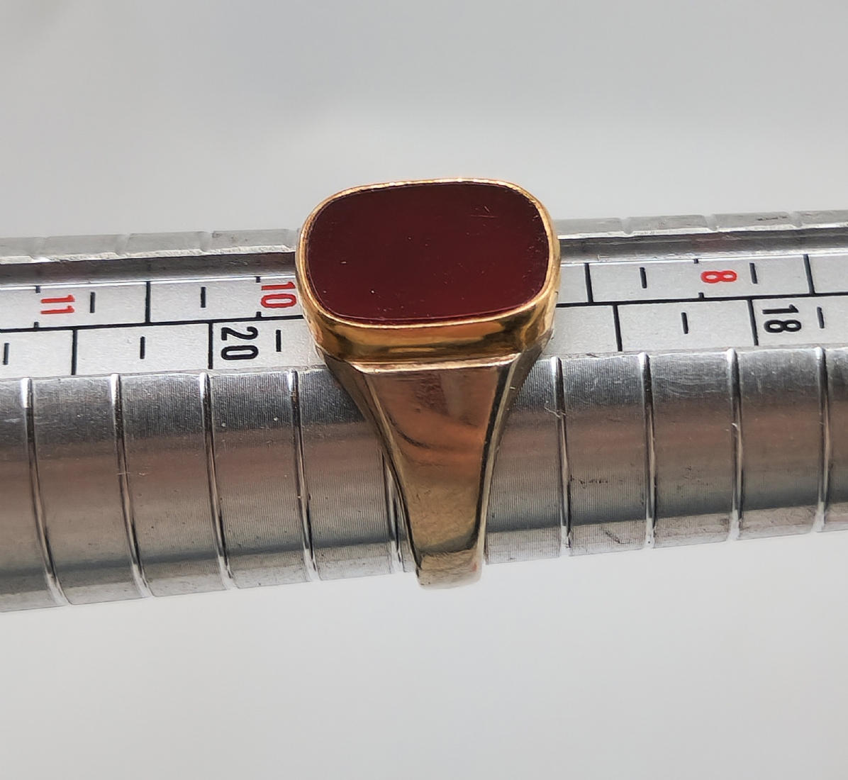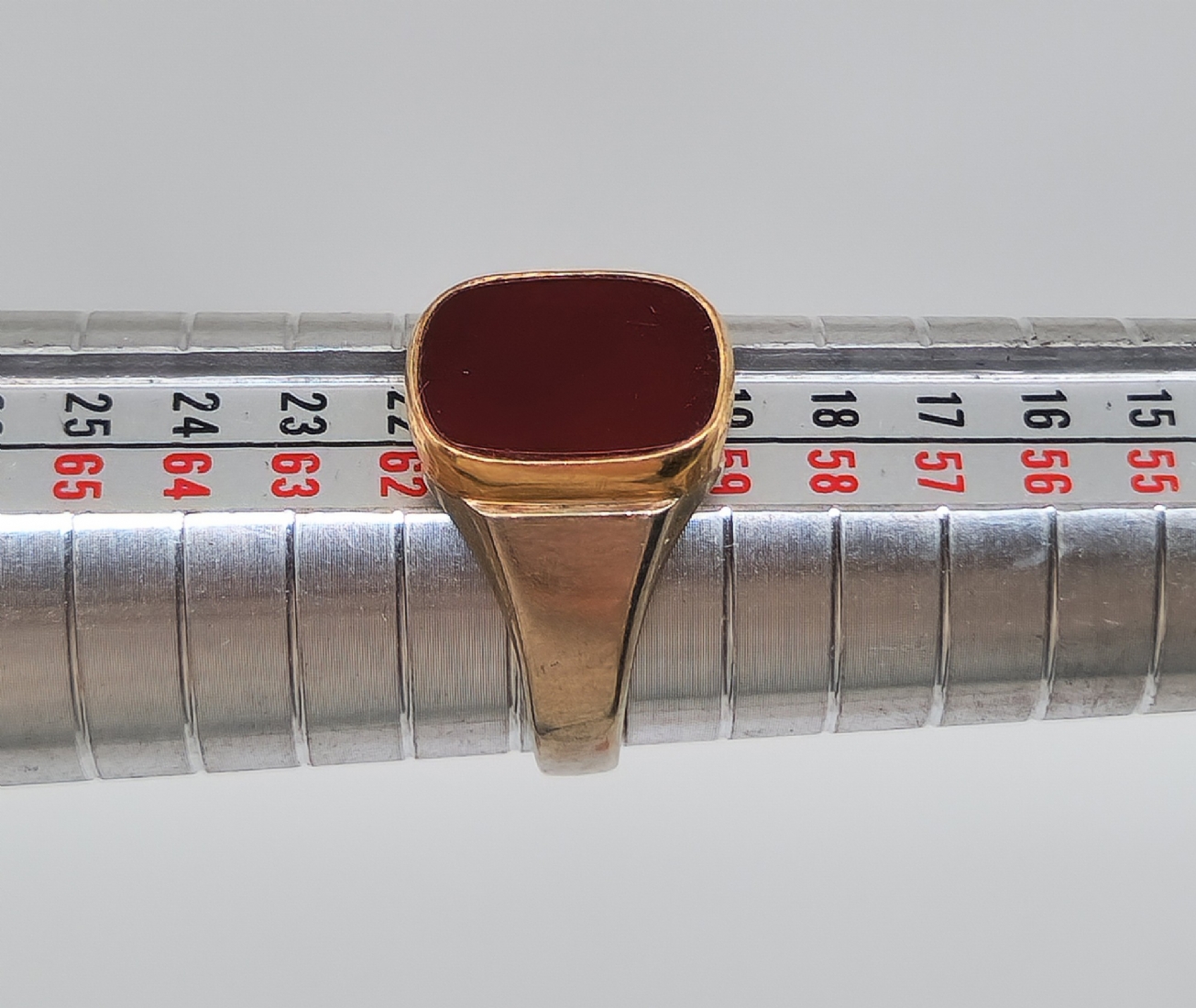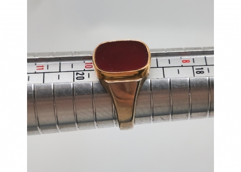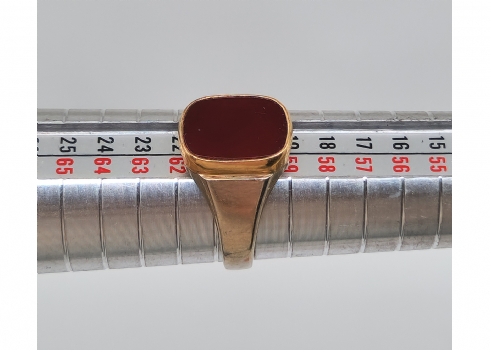 טבעת (חתומה) עשויה זהב לבן וצהוב 9 קארט, חתומה, משובצת לוח קורניאול, משקל כולל: 5.65 גרם סה"כ