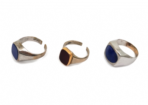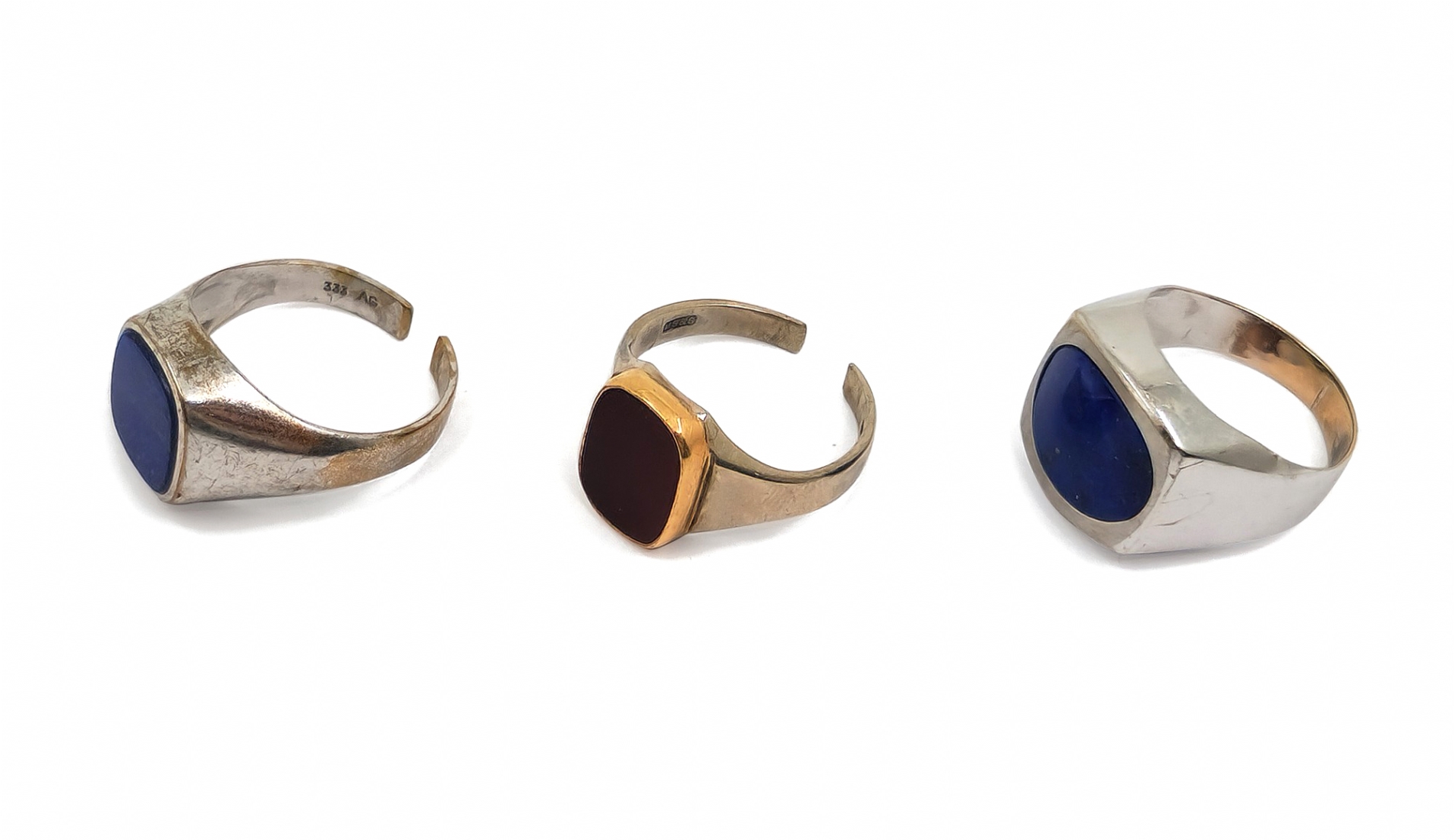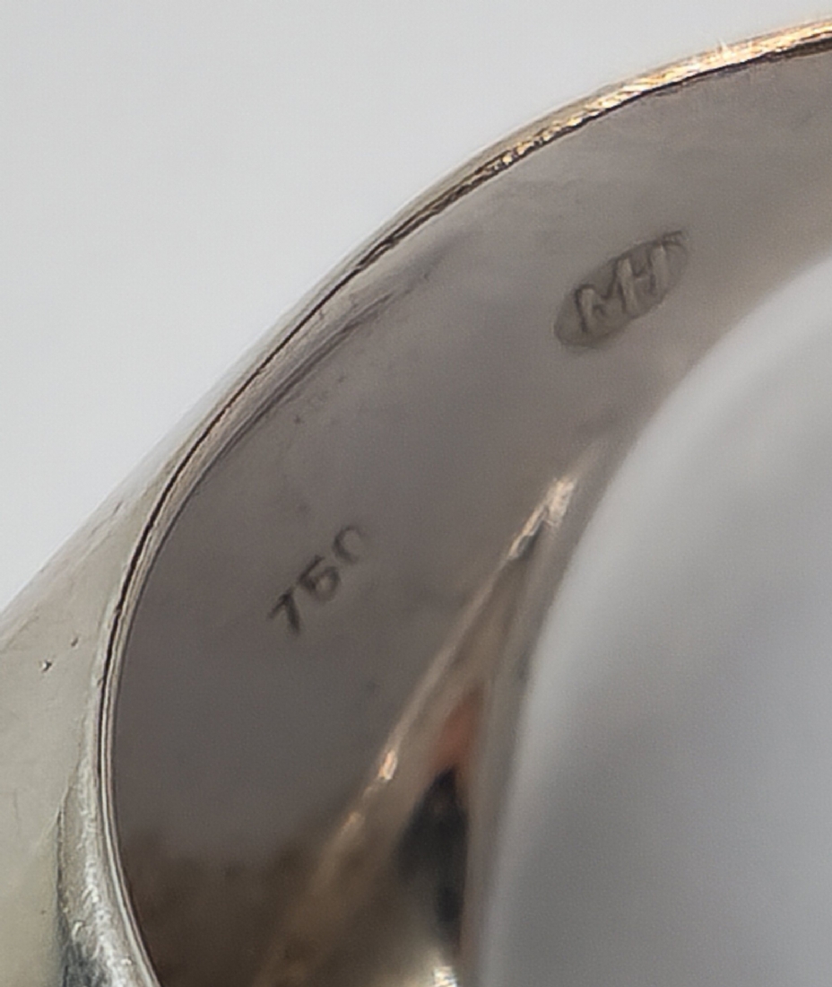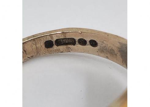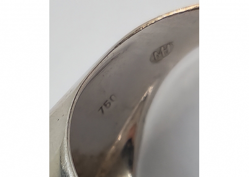 טבעת (חתומה) עשויה זהב לבן וצהוב 9 קארט, חתומה, משובצת לוח קורניאול, משקל כולל: 5.65 גרם סה"כ