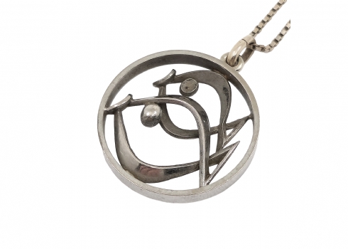 תליון דגים עשוי זהב לבן 18 קארט חתום במשקל: 6 גרם, בקוטר: 2.5 ס"מ
