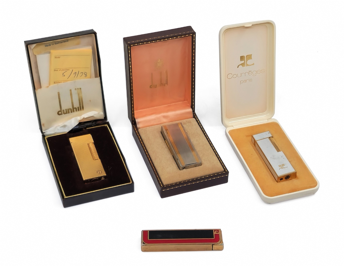 ארבעה מצתים וינטג’ יוקרתיים: Dunhill Rollagas , Courrèges, Pierre Cardin