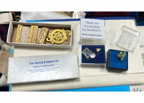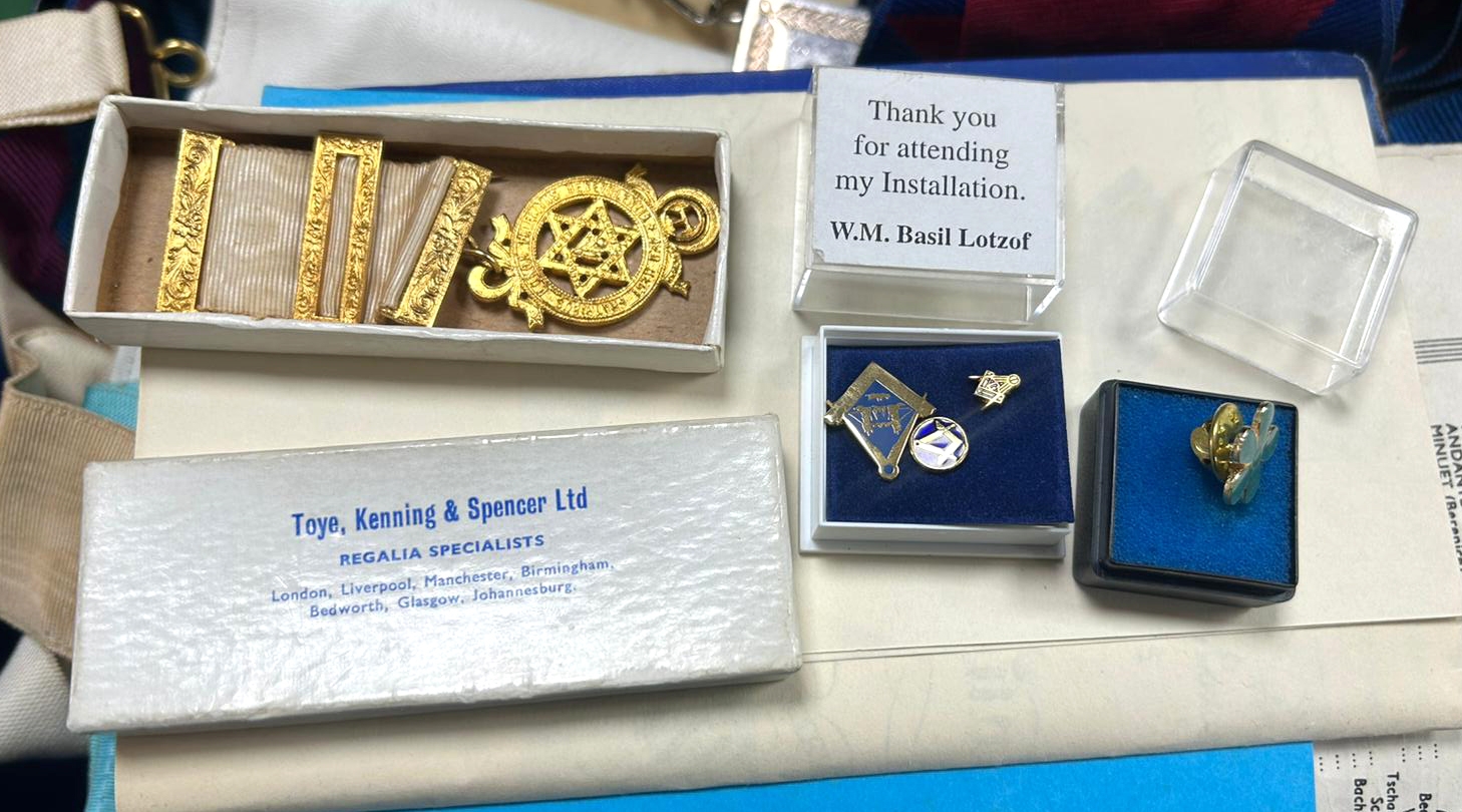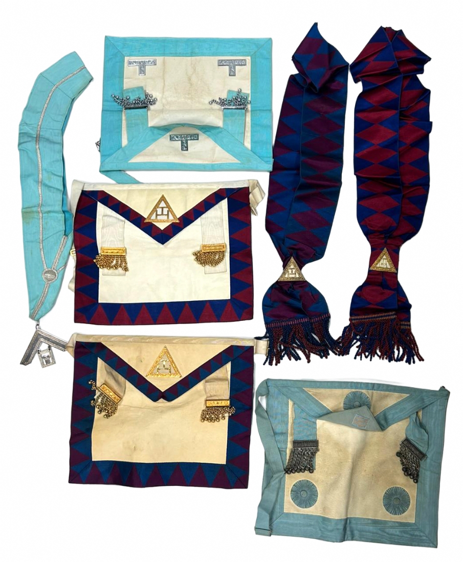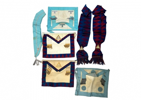 סט פריטי מסדר הבונים החופשיים - סינרים, קולרים, תכשיטים וספרות טקסית