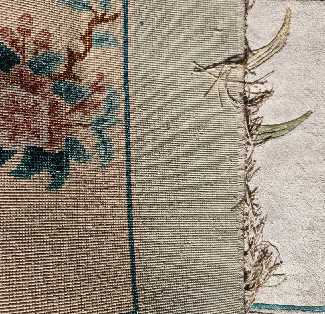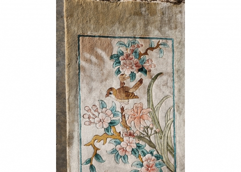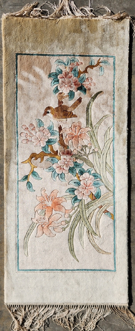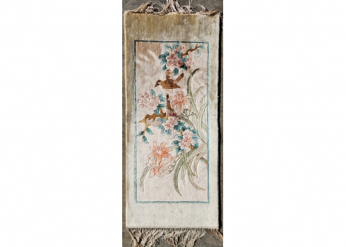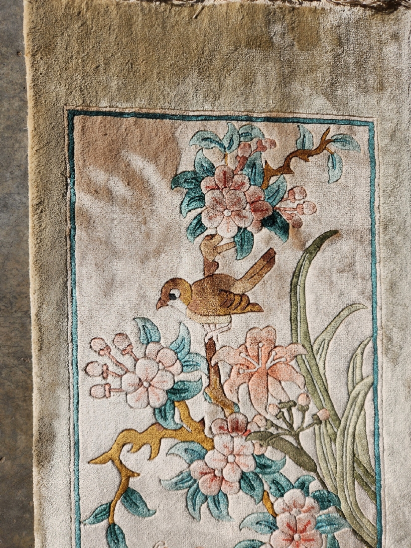 שטיח משי סיני וינטג' – ציפור על ענף פריחה