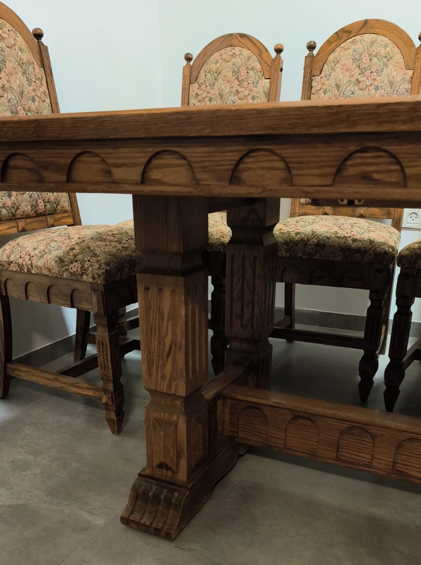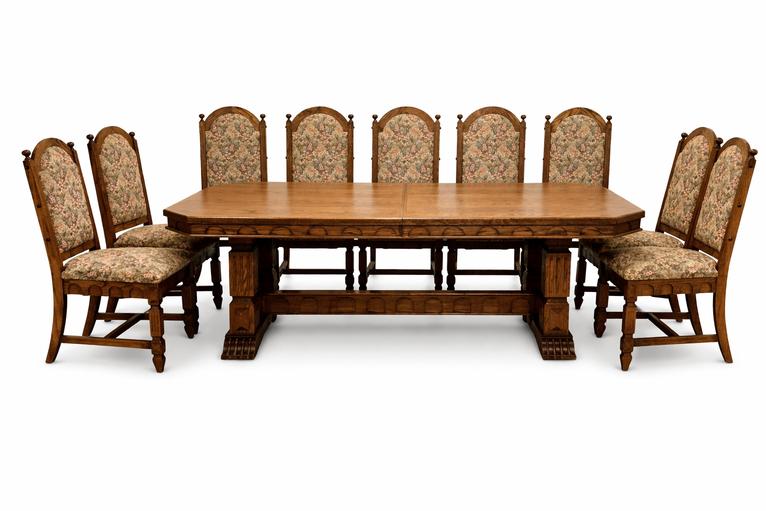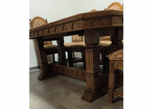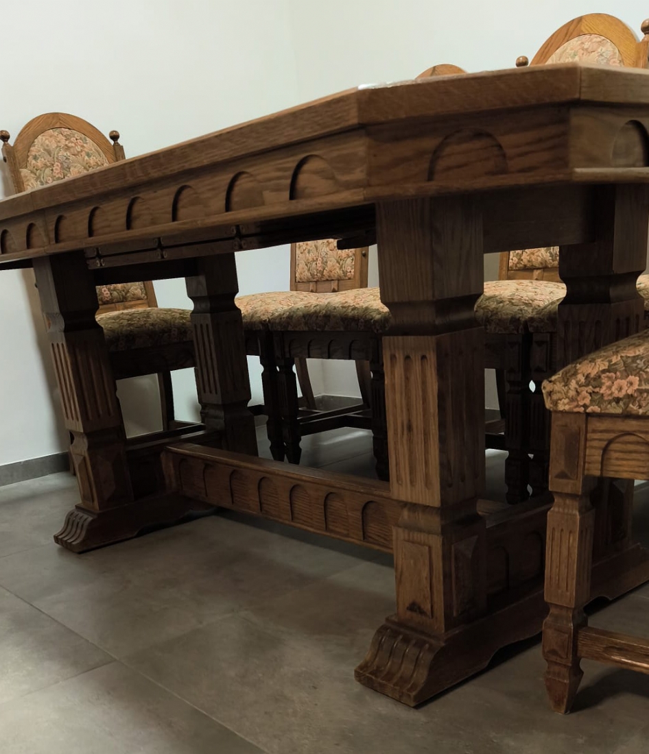 פינת אוכל מעץ מלא עם 8 כיסאות – שולחן נפתח