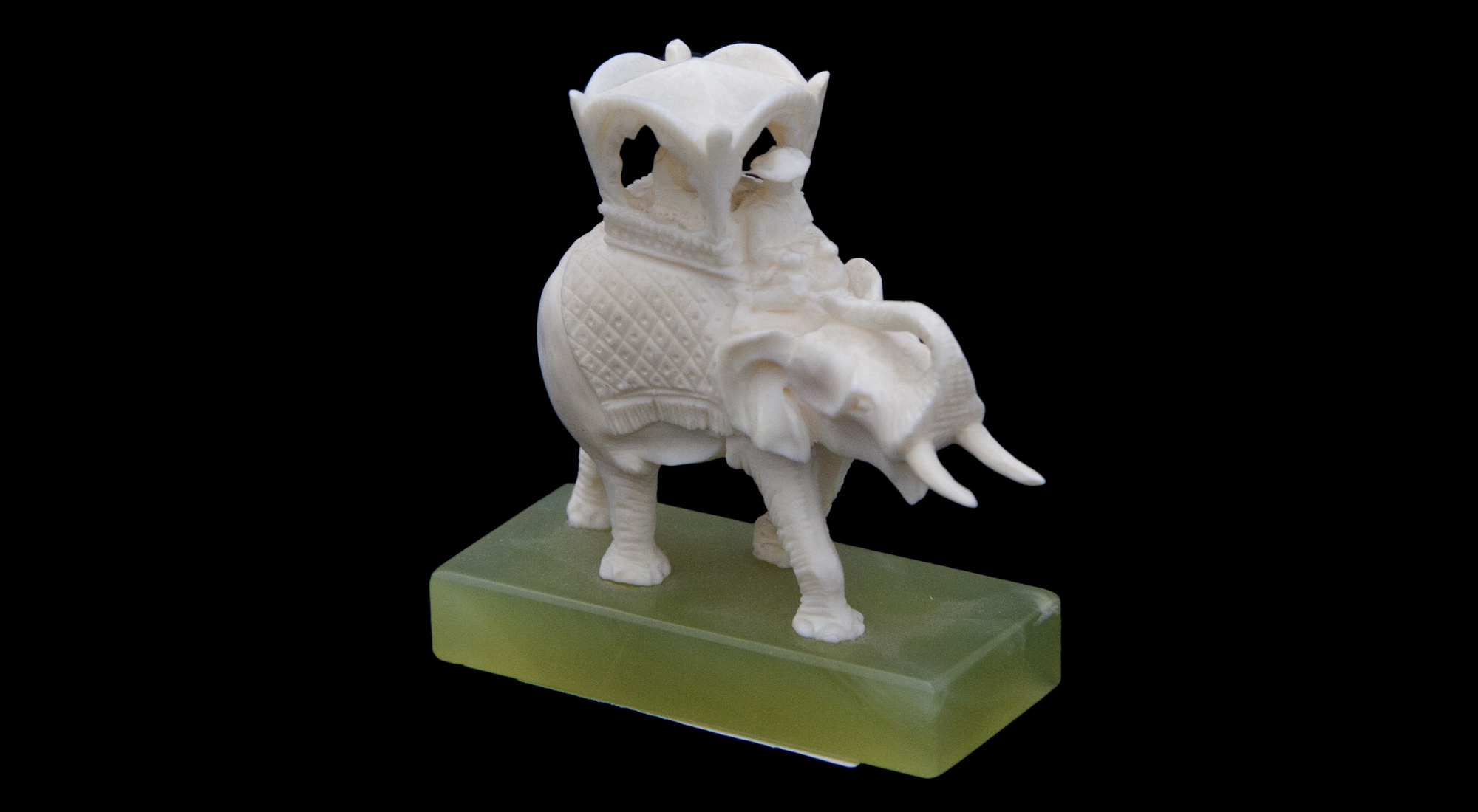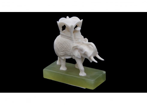 פסלון הודי איכותי עשוי שנהב (שן פיל) מגולף בעבודת יד אמן ובסיס אוניקס ירוק, גובה: 7 ס"מ.