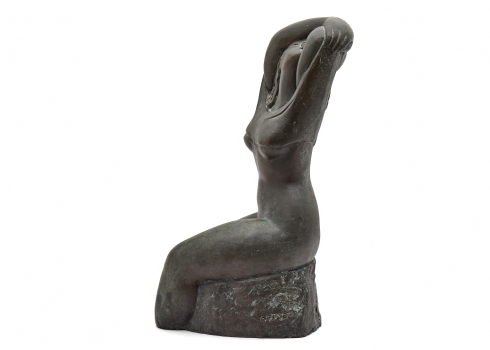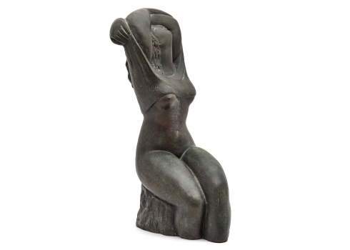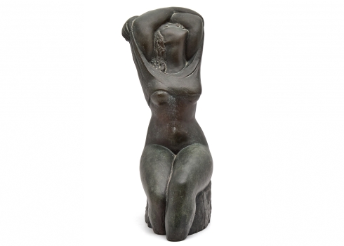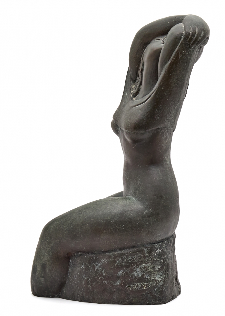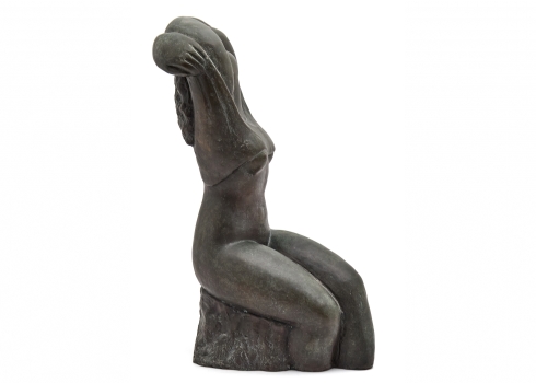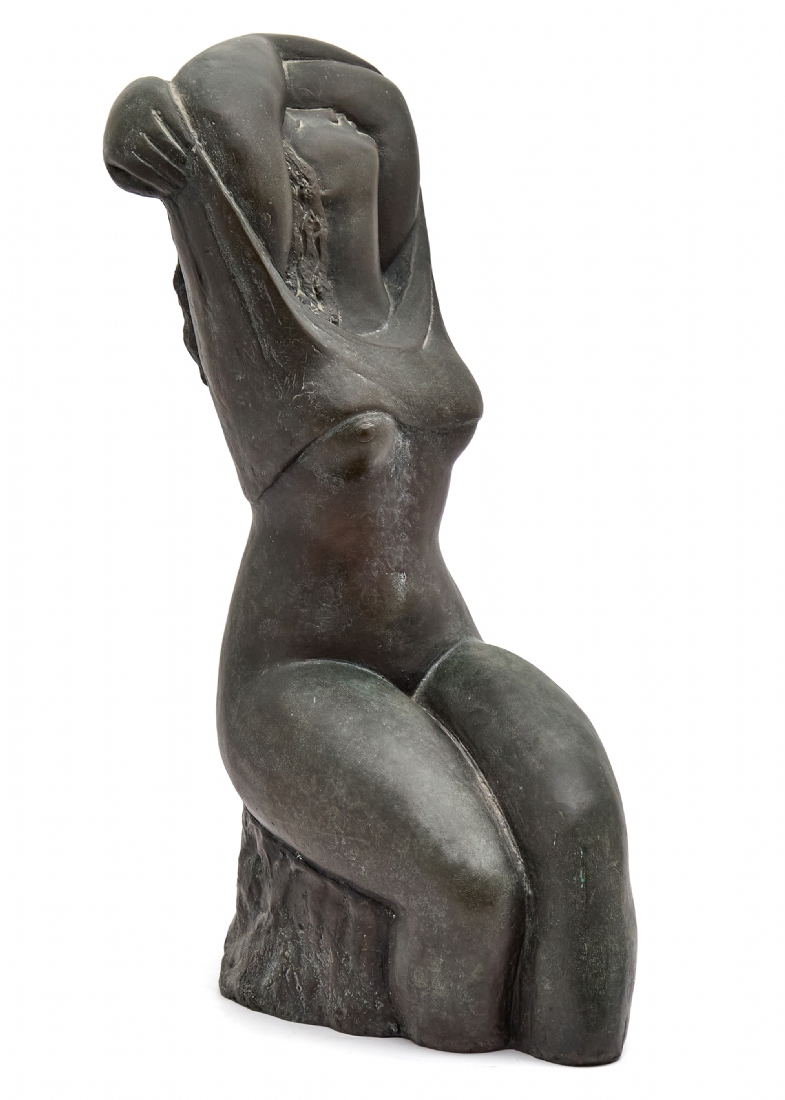מספר הפריט בקטלוג 75אהרון פריבר - 'אישה', פסל ברונזה ישן בפטינה חומה, חתום, גובה: 43 ס"מ.