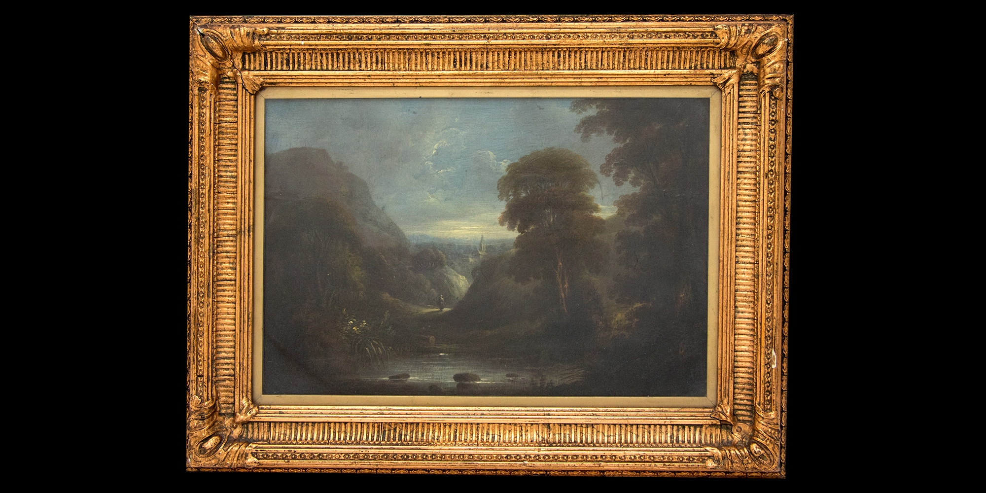 ציור עתיק מהמאה ה-18, כפי הנראה אסכולה אנגלית, שמן על לוח, לא חתום, אמן לא מזוהה, מסביבות שנת 1780 בקירוב, מידות: 23X33 ס"מ.