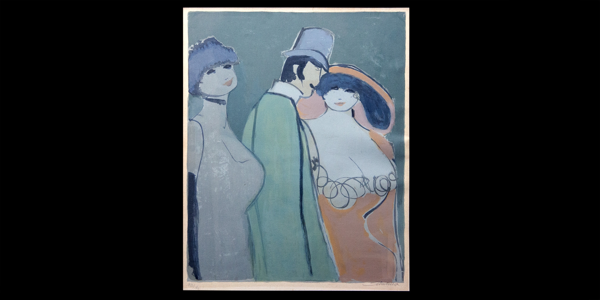 דוד שניאור - דמויות בורגניות', ליטוגרפיה חתומה על ידי האמן, ממוספרת- 158/190 מידות: 50X40 ס"מ.