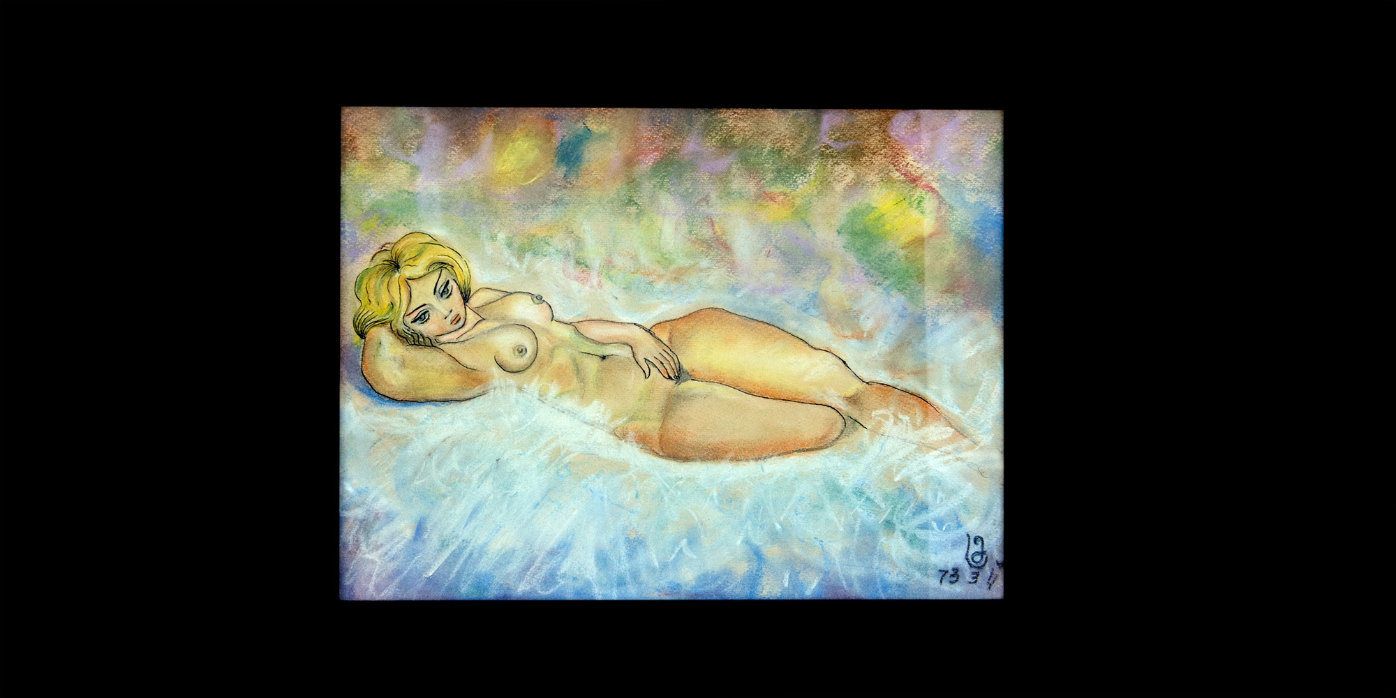 'עירום נשי' - ציור ישן, עיפרון ודיו על נייר, מידות: 24X32 ס"מ.
