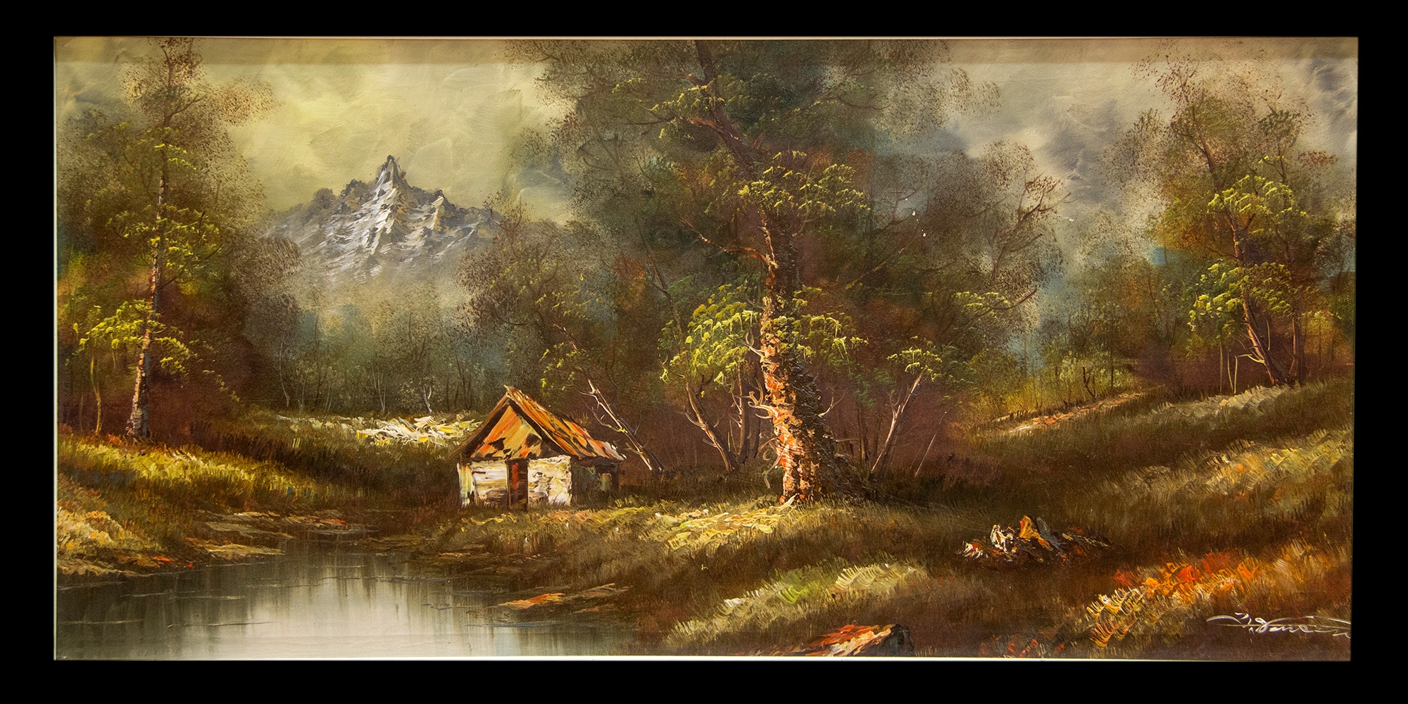 'נוף הררי', שמן על בד, חתום, מידות: 60X120 ס"מ.