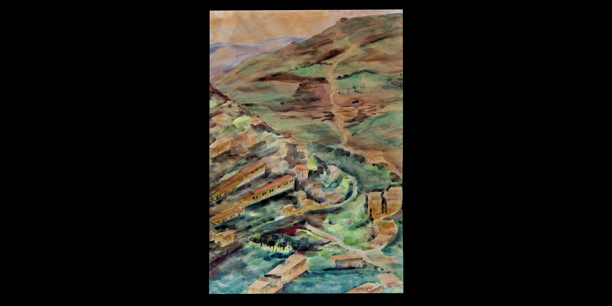 ציונה תג'ר - 'נוף עירוני', אקוורל על נייר, חתום, לא ממוסגר, מידות: 52X35 ס"מ.